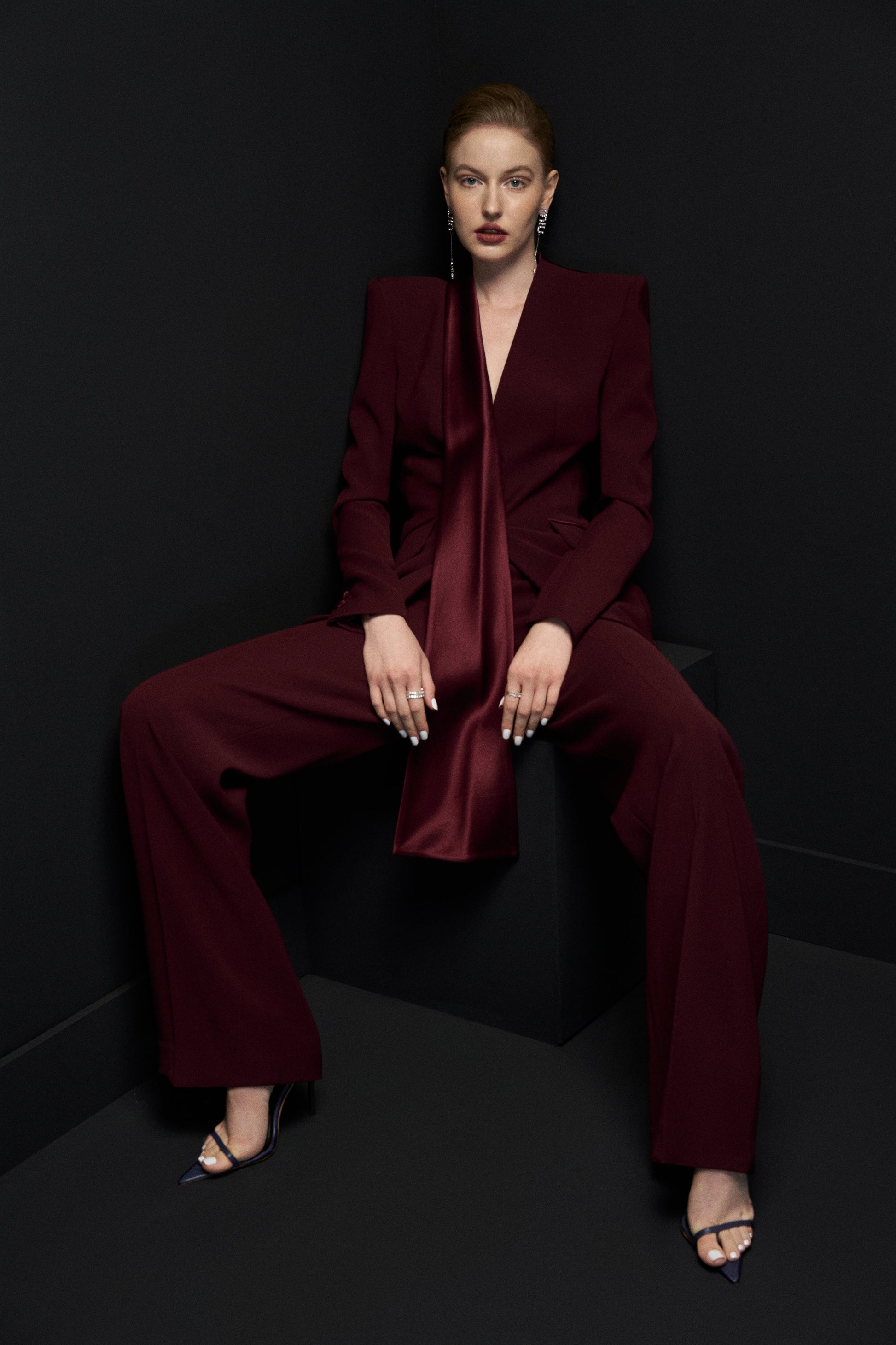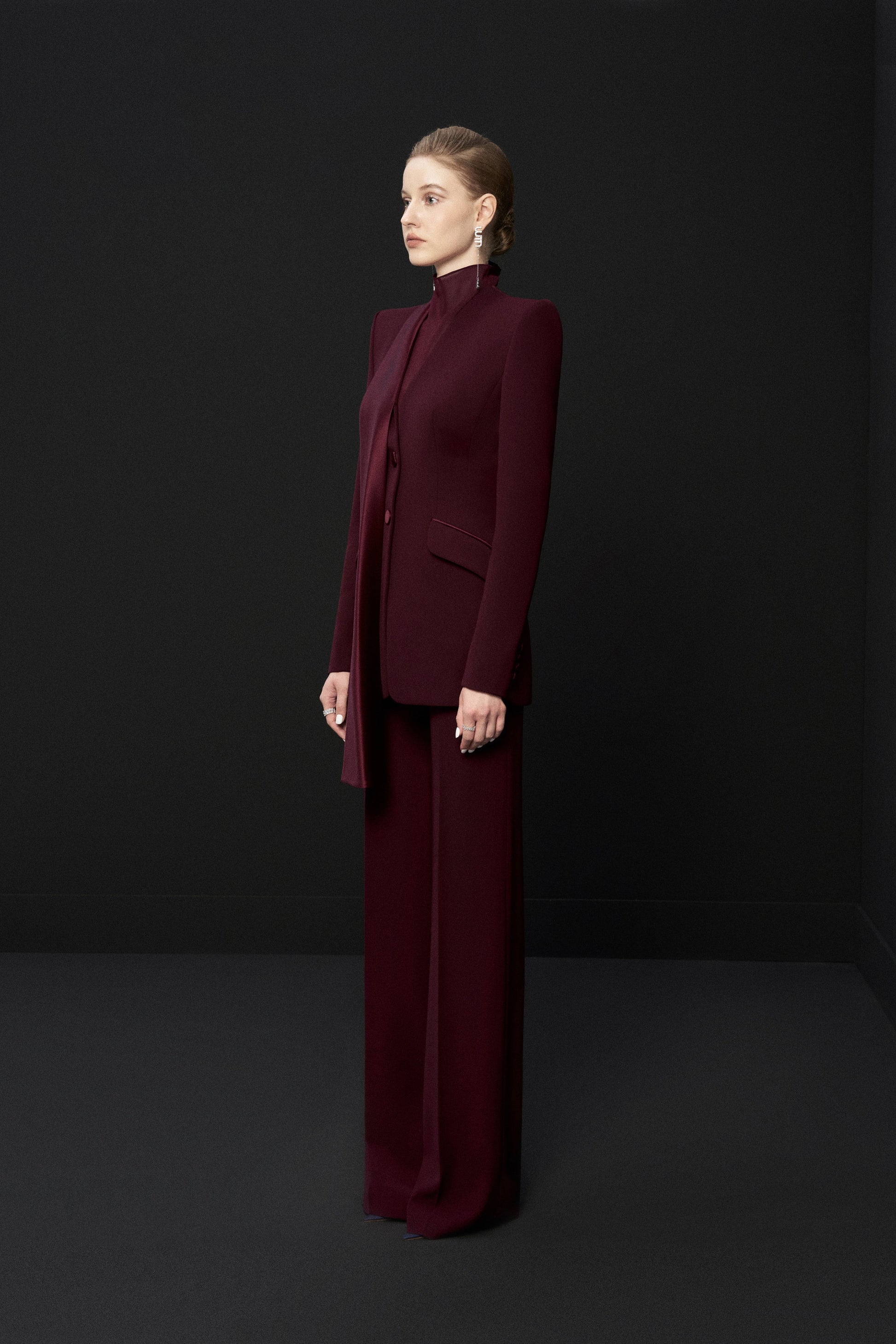 Alberta Jacket | Được tái hiện thành một phiên bản trang nhã hơn nhưng vẫn giữ lại chi tiết đặc trưng - phần vạt khăn bắt chéo tạo đường cong liền mạch, lưng sau xẻ thanh thoát, xếp chồng - phù hợp cho những dịp trang trọng và có tính nghi lễ.