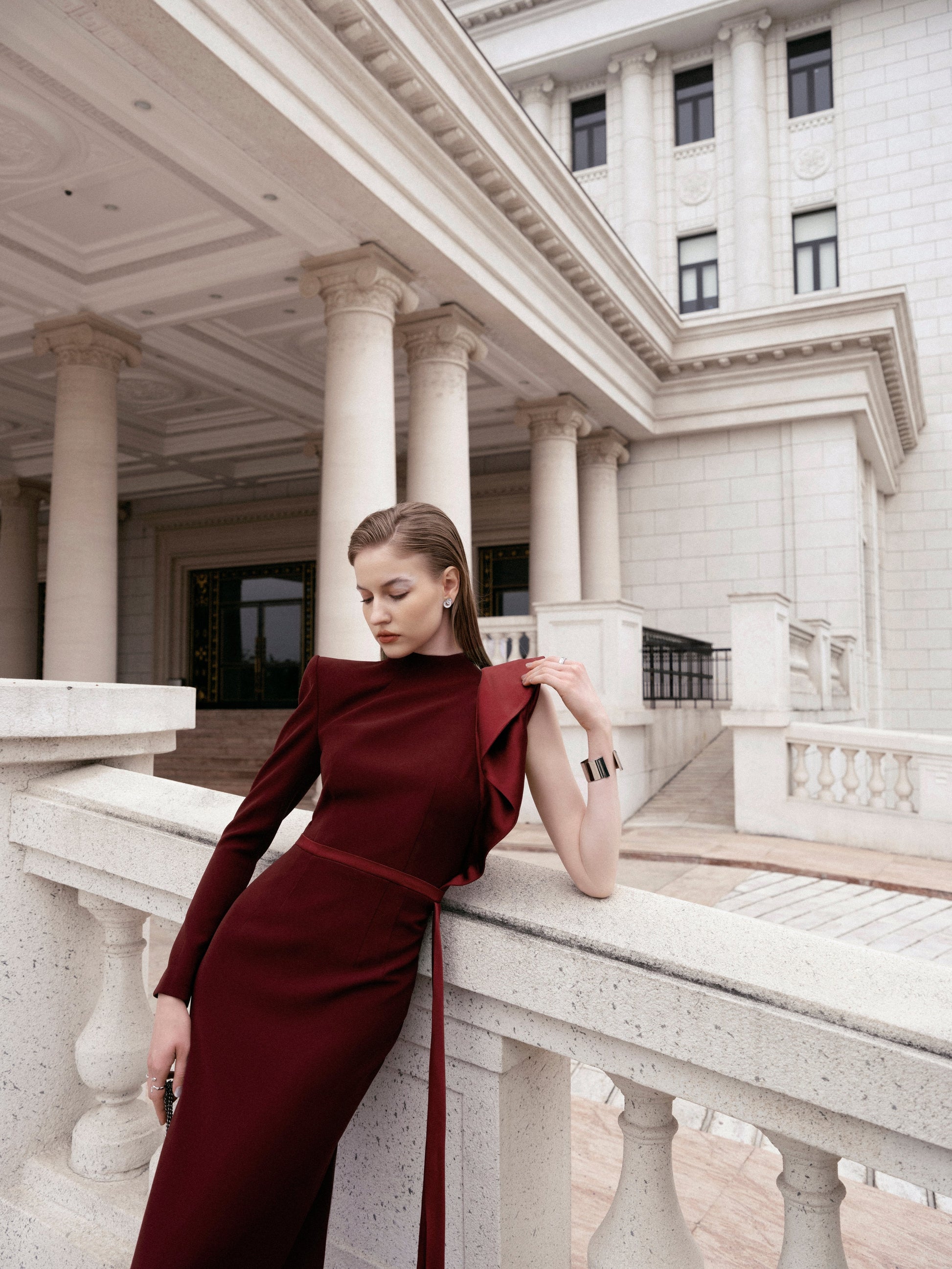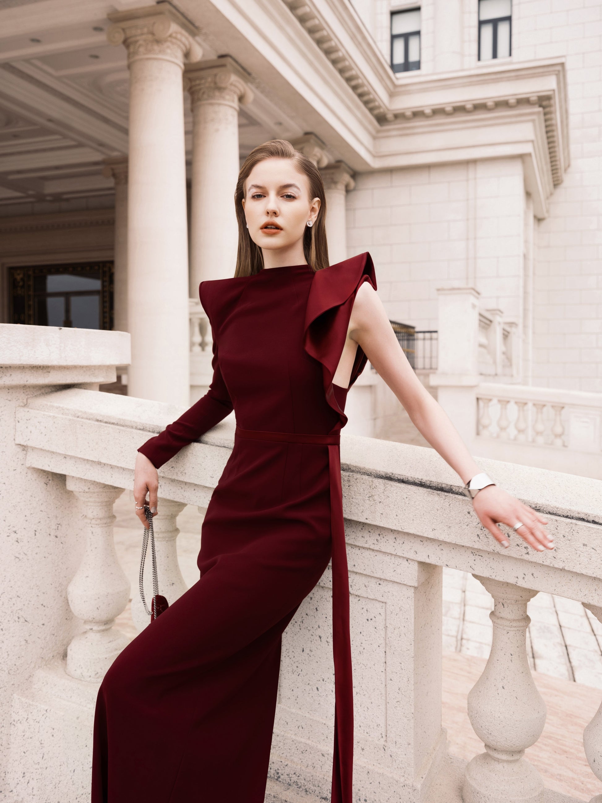 Tập trung vào những phom dáng tinh giản và những đường cắt may tinh xảo, Bernadette Dress được thiết kế trên nền silk cao cấp trong phom bút chì đặc trưng của thương hiệu. LEKIEU sử dụng tone màu Wine với phần drap tay lệch tạo điểm nhấn hoàn hảo, giúp nâng cấp tổng thể trang phục thêm phần thanh lịch và trang nhã.