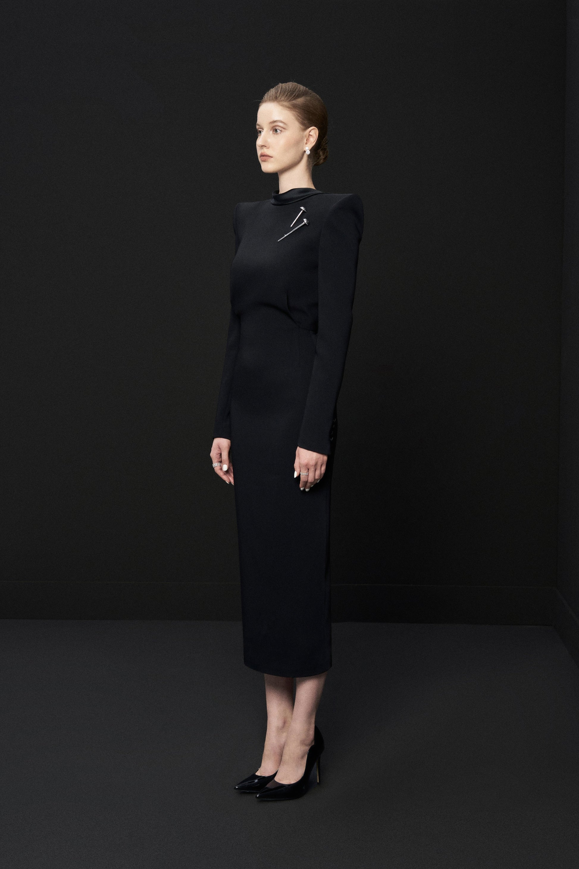 Kết hợp tinh thần may đo thanh lịch, Chloe Dress nổi bật bởi chất liệu Silk Wool cao cấp phối đáp cổ Sateen hiệu ứng bóng mịn trên bề mặt. Với chi tiết thân sau tạo V kéo dài tới võng lưng mang vẻ đẹp cổ điển, trang nhã phù hợp cho những dịp trang trọng và có tính nghi lễ.