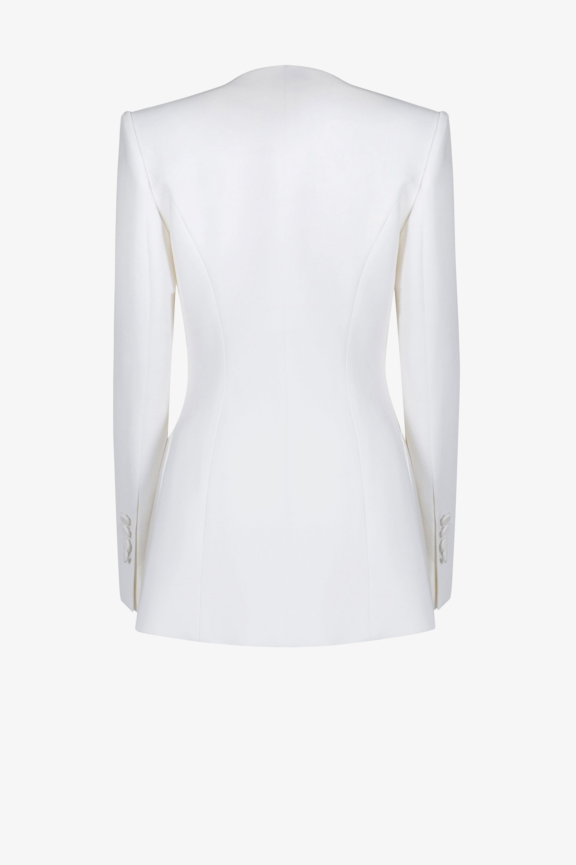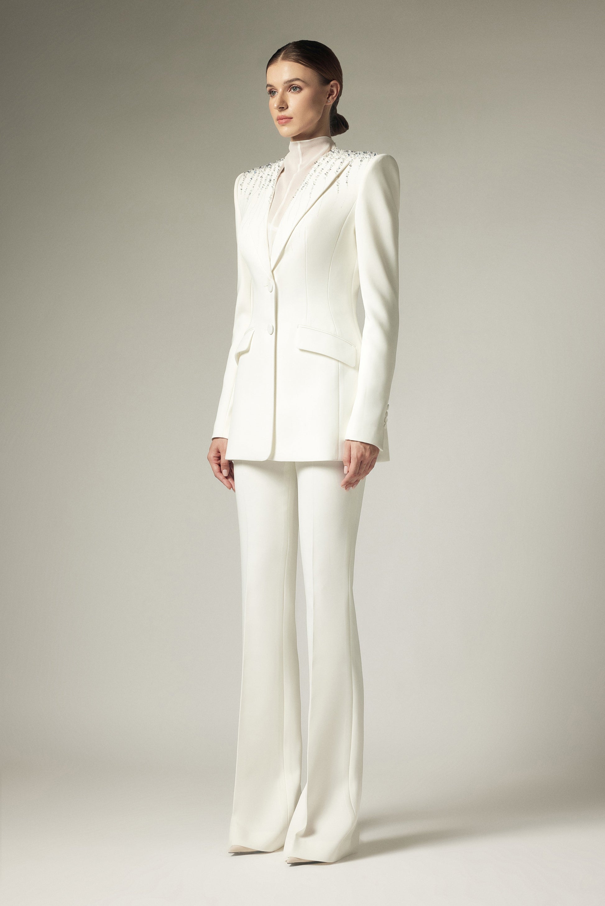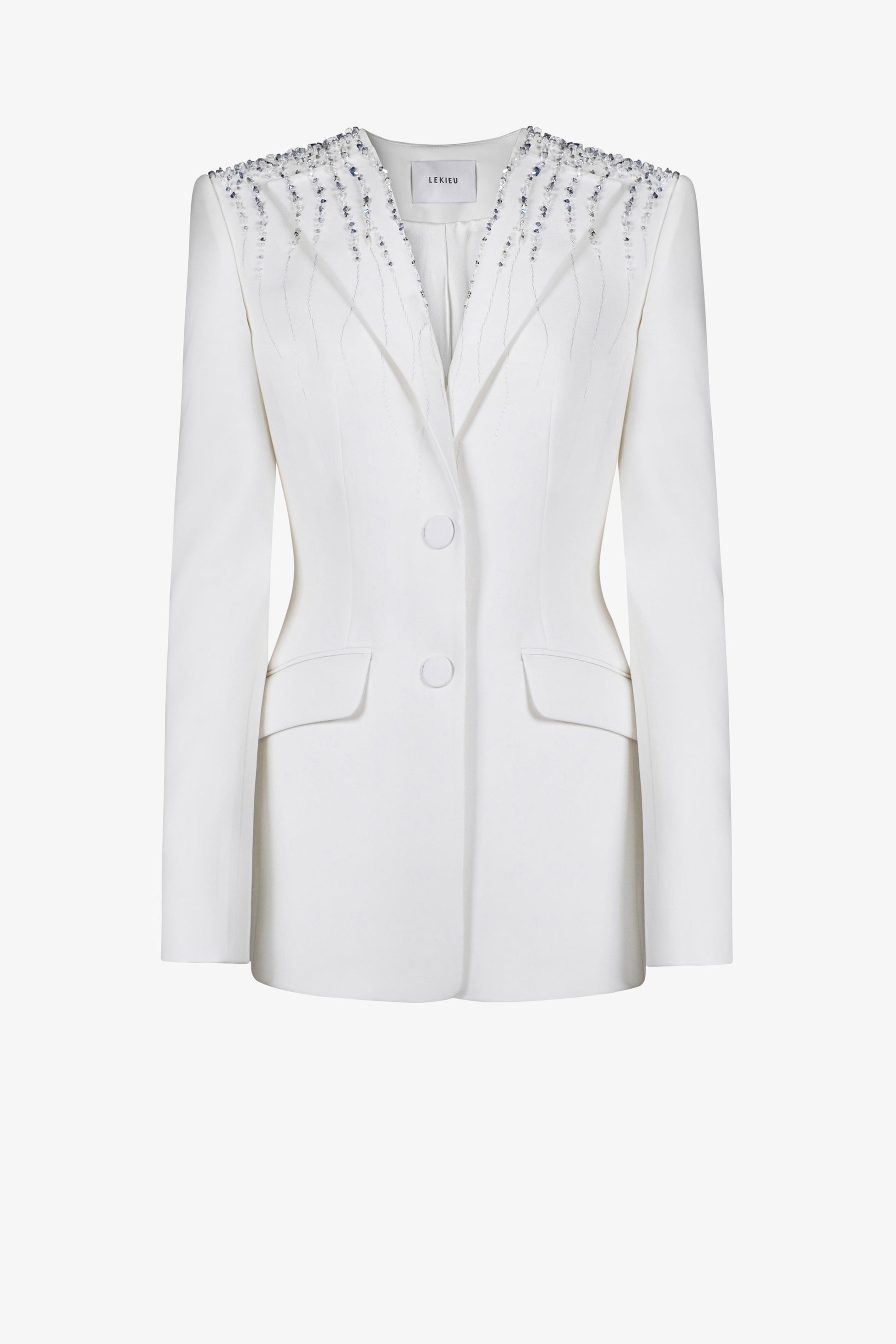 Xuất hiện trong bộ sưu tập Winter '23, Chrissy Jacket được lấy cảm hứng từ thiết kế tuxedo sang trọng nổi bật với phần cầu vai có cấu trúc cứng cáp kết hợp chi tiết đính đá hoàn toàn thủ công mang đến sự đối lập thú vị. Sử dụng đường nét tinh giản cùng chuẩn mực may đo cao cấp, Chrissy Jacket đã chứng minh bản thân là lựa chọn hoàn hảo để thể hiện tầm vóc và khí chất của người phụ nữ trong những sự kiện mang tính nghi lễ.