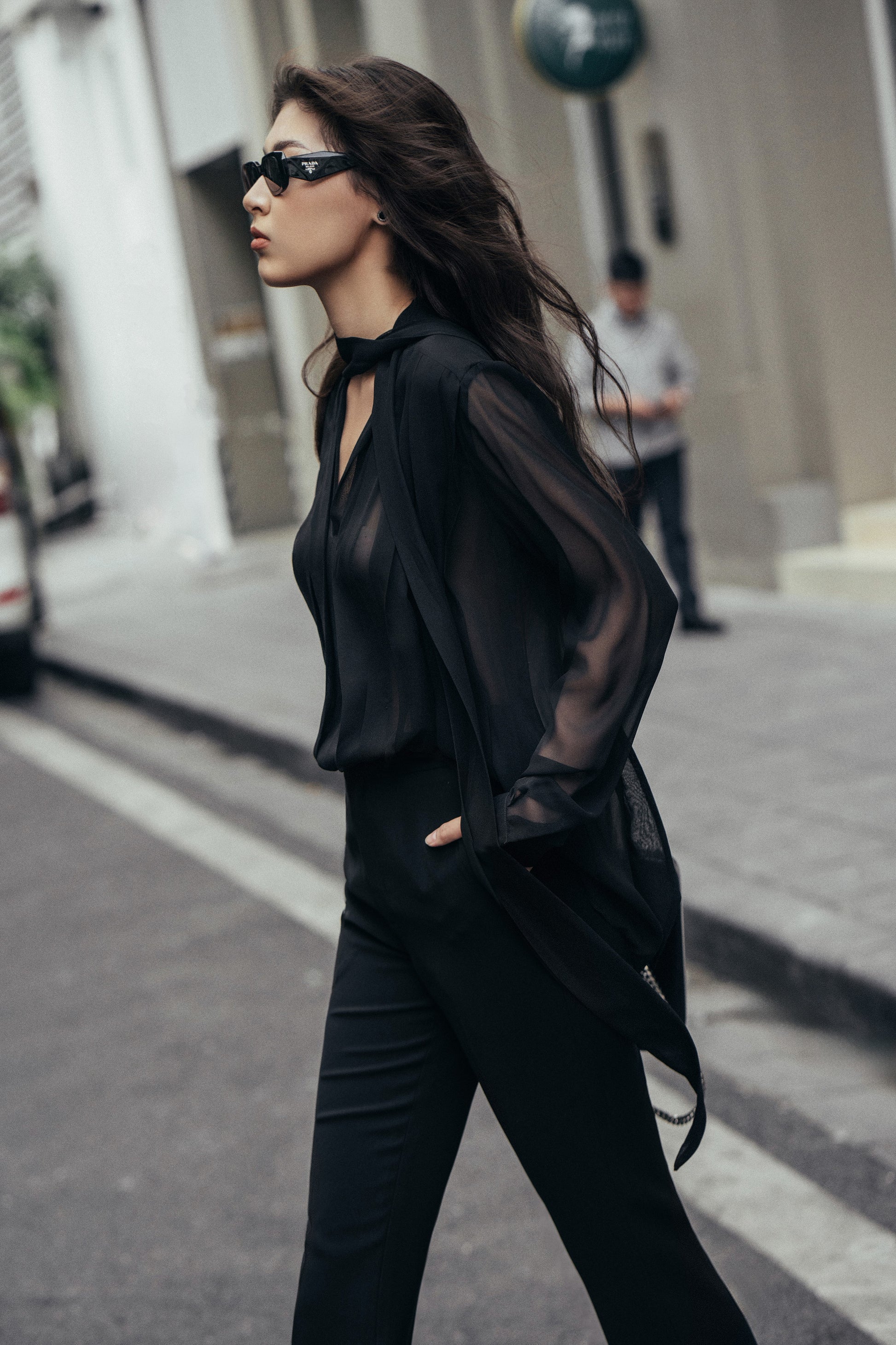 Những đường gấp nếp ngẫu hứng trên nền chất liệu Chiffon không-trọng-lượng tạo hiệu ứng xuyên thấu gợi cảm, đại diện cho tuyên ngôn của tính nữ thời hiện đại.