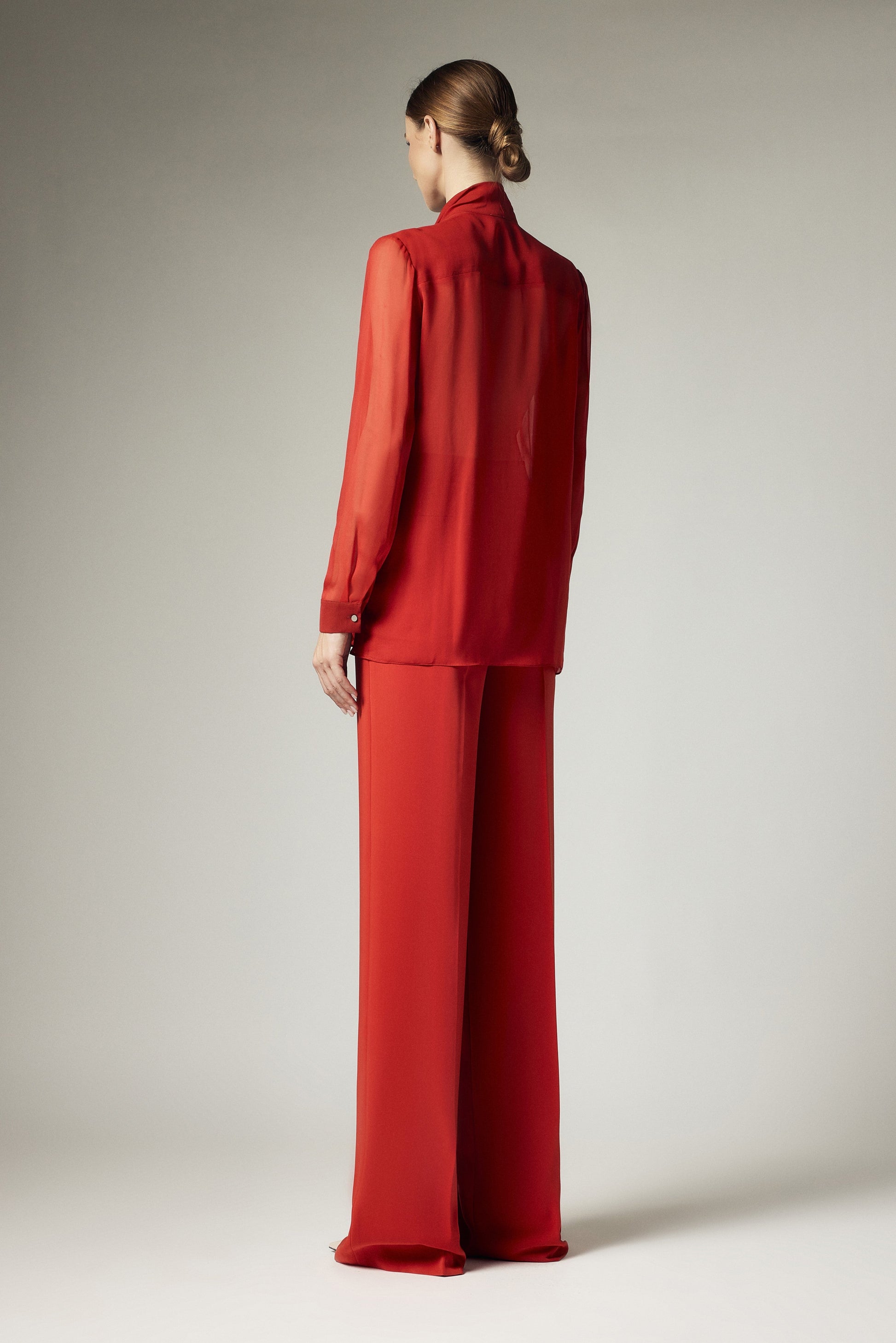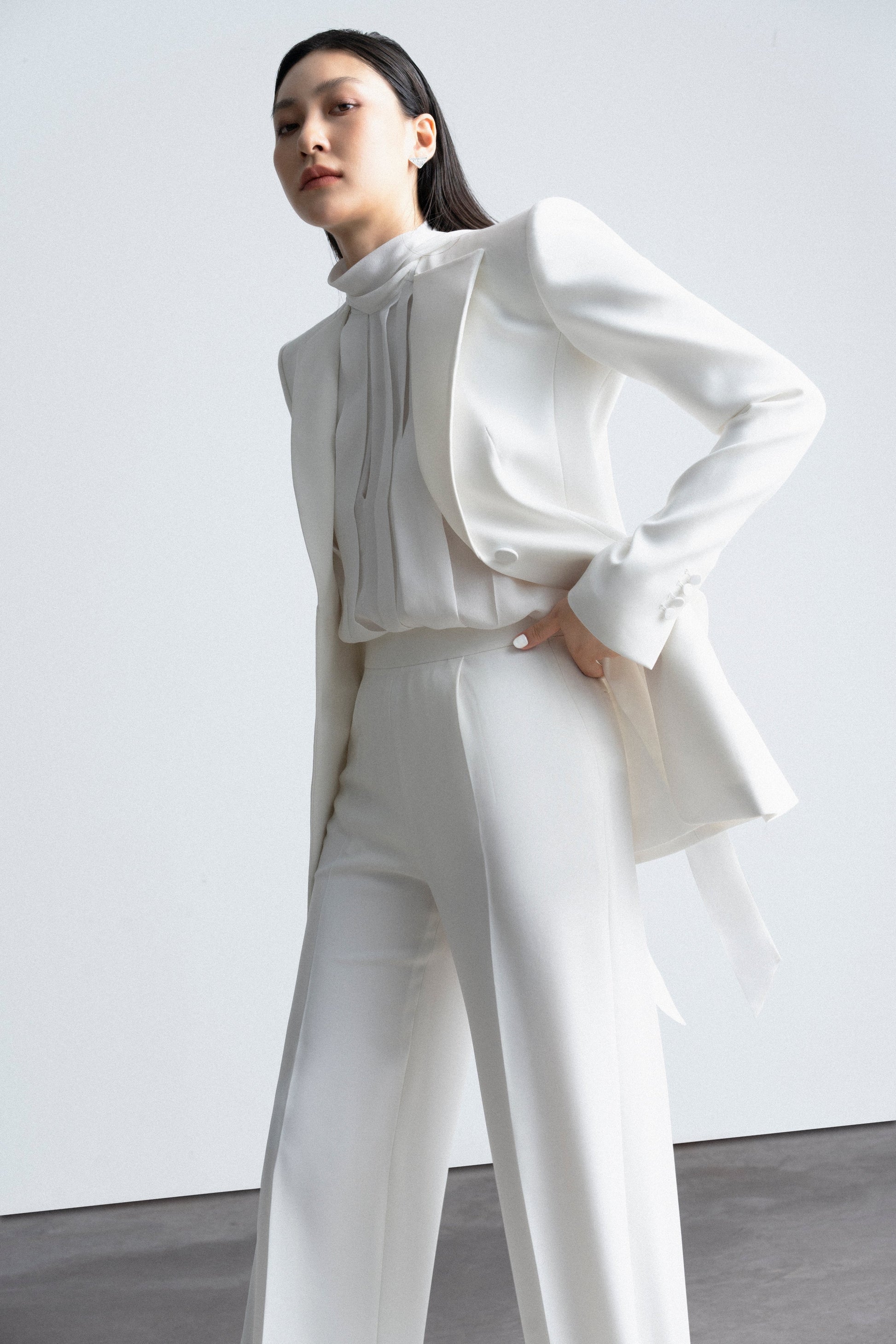 Bằng các đường xếp nếp ngẫu nhiên trên nền chất liệu silk cao cấp, Dixie Shirt kết hợp với quần suông rộng cùng tone đã thể hiện trọn vẹn tinh thần sang trọng, trang nhã của thương hiệu.