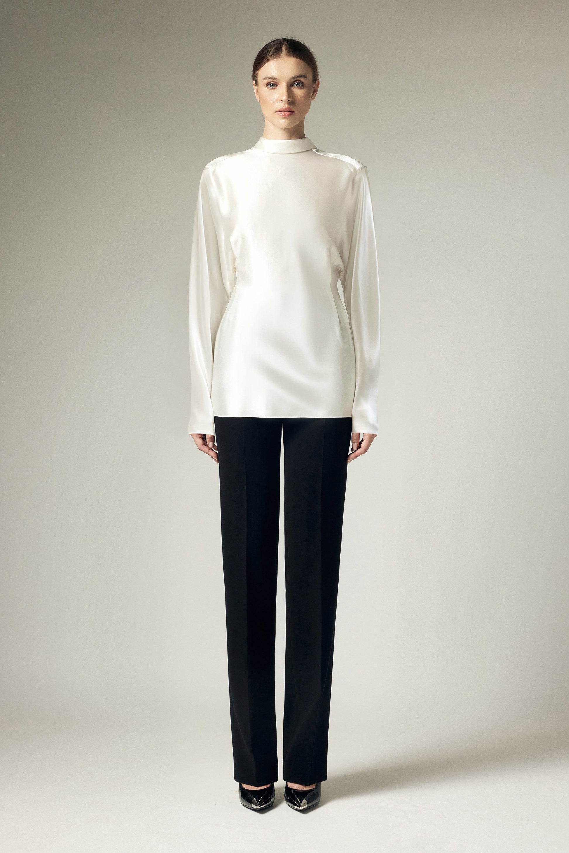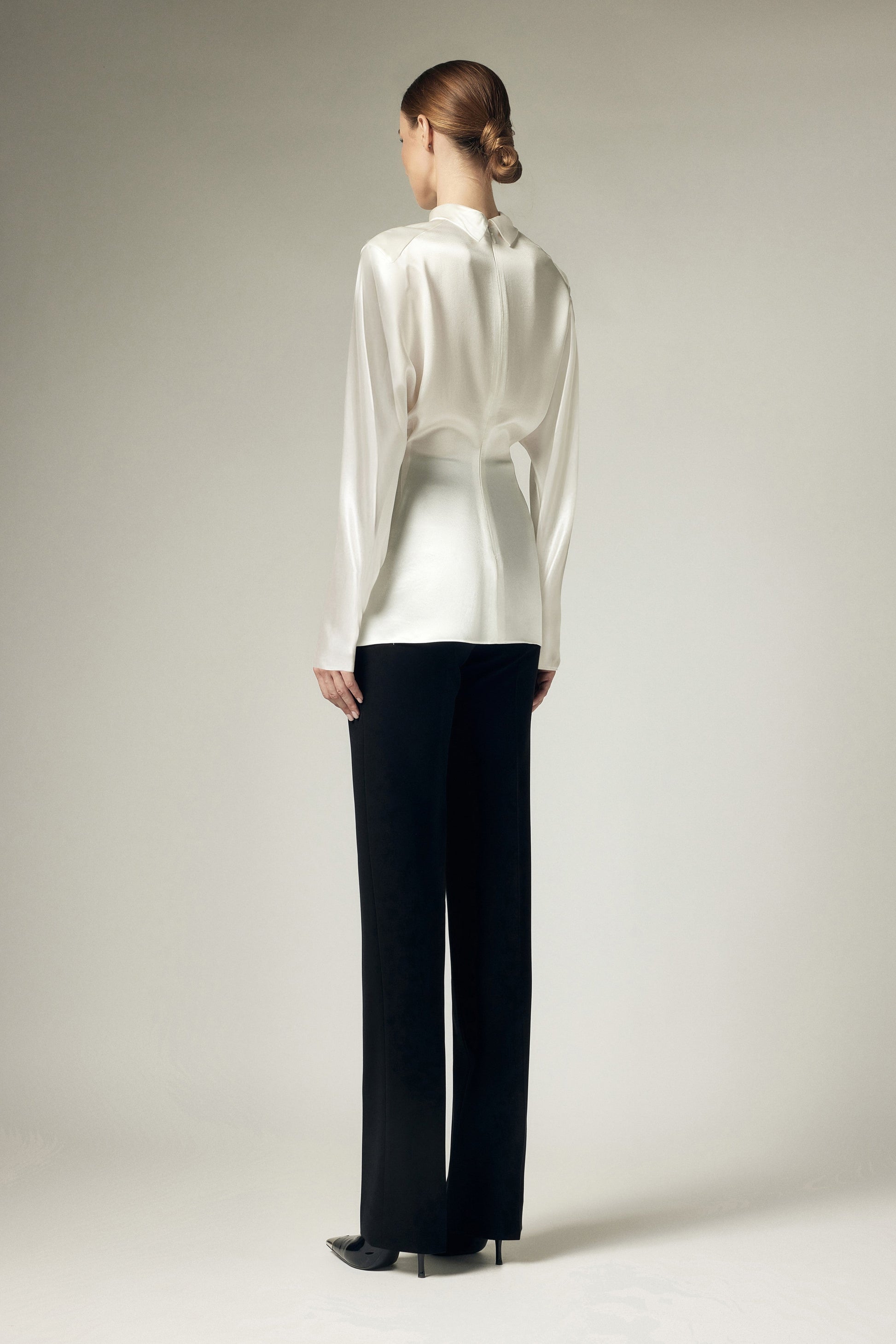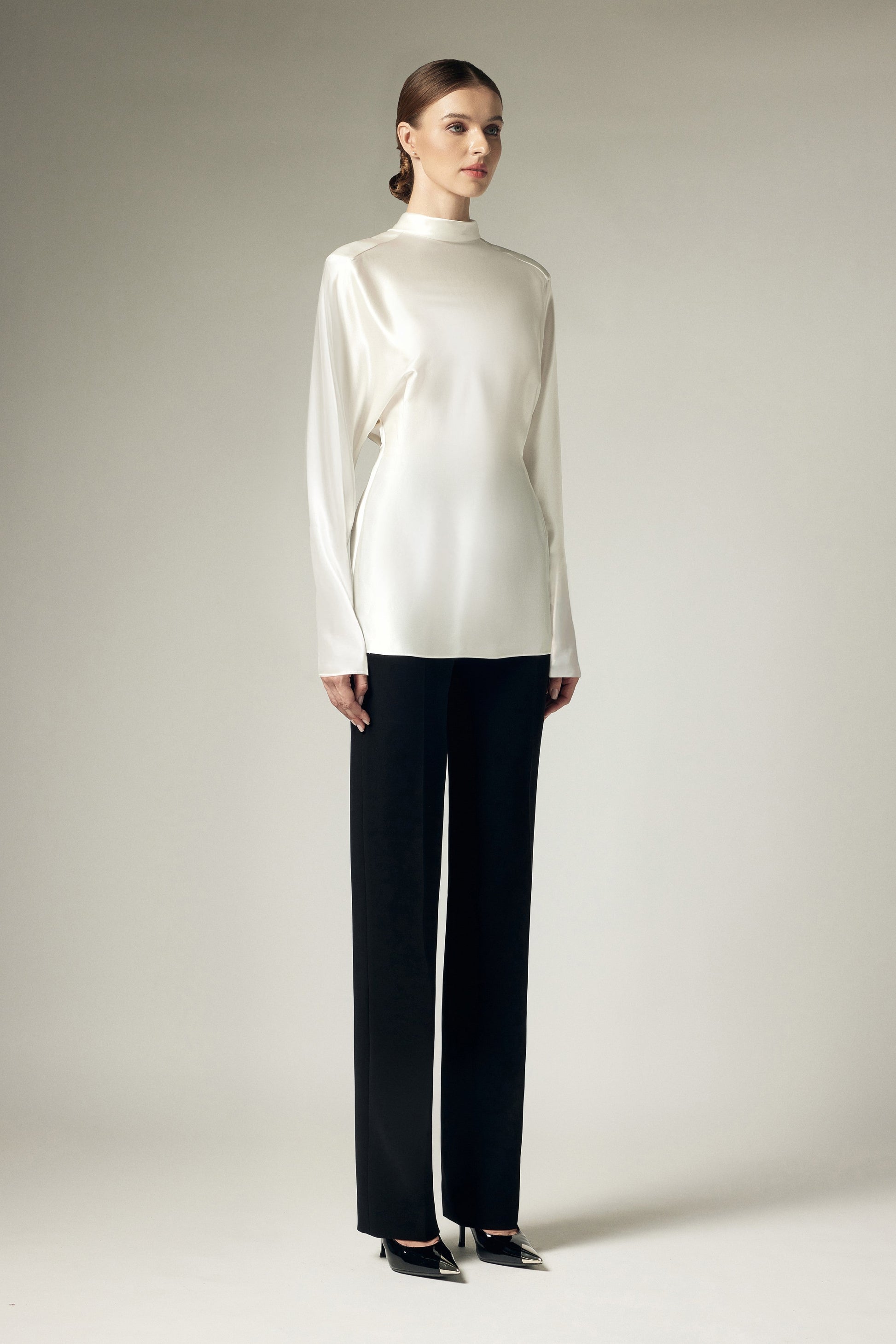 Cải tiến từ những chiếc sơ mi dáng ôm thông thường, Juana Top với chi tiết bùng nhẹ thân trên cộng hưởng cùng phần vai ngang tạo nên tổng thể hài hoà và nữ tính.