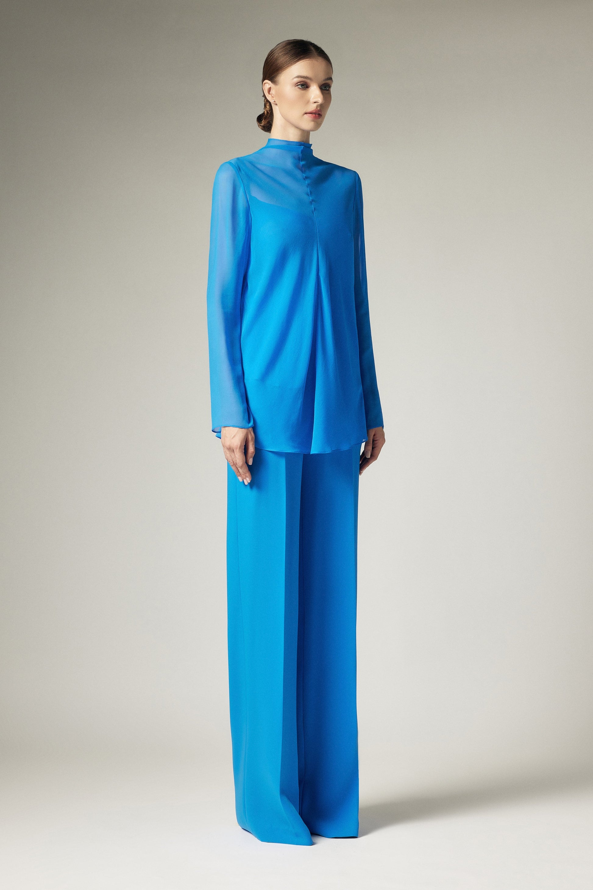 Được xử lý dưới chất liệu Marocain Crepe tạo độ mềm rủ, cùng thiết kế ống suông thẳng tạo những bước đi uyển chuyển, tôn vinh vóc dáng người phụ nữ.