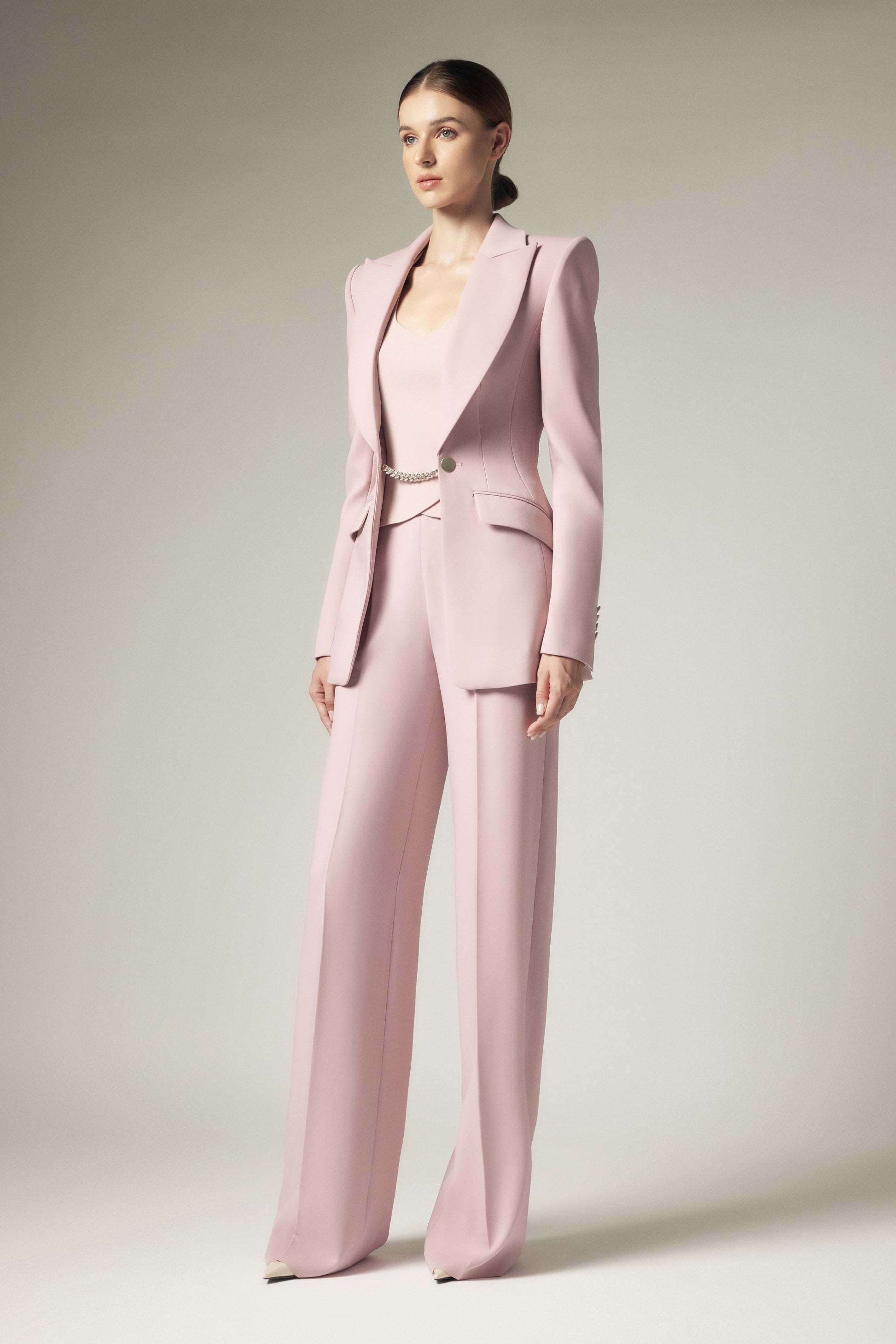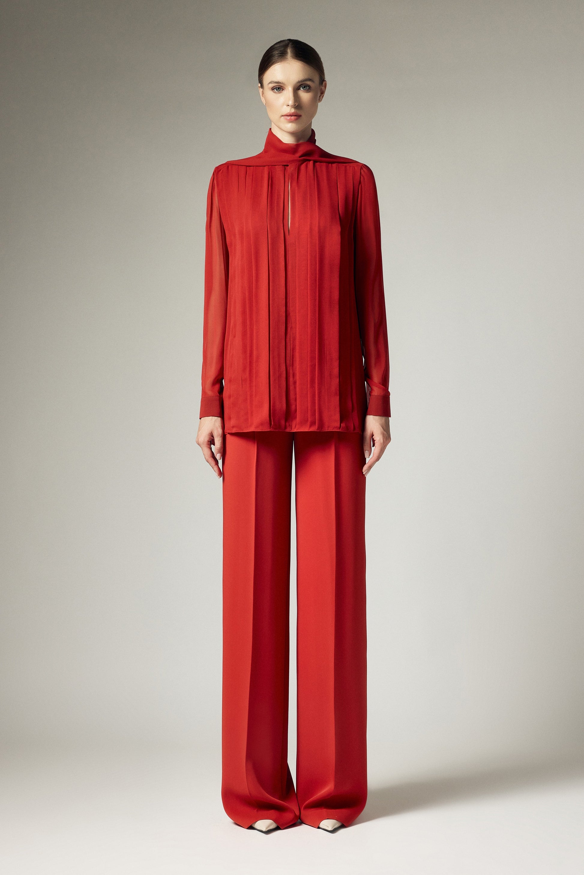 Được xử lý dưới chất liệu Marocain Crepe tạo độ mềm rủ, cùng thiết kế ống suông thẳng tạo những bước đi uyển chuyển, tôn vinh vóc dáng người phụ nữ.