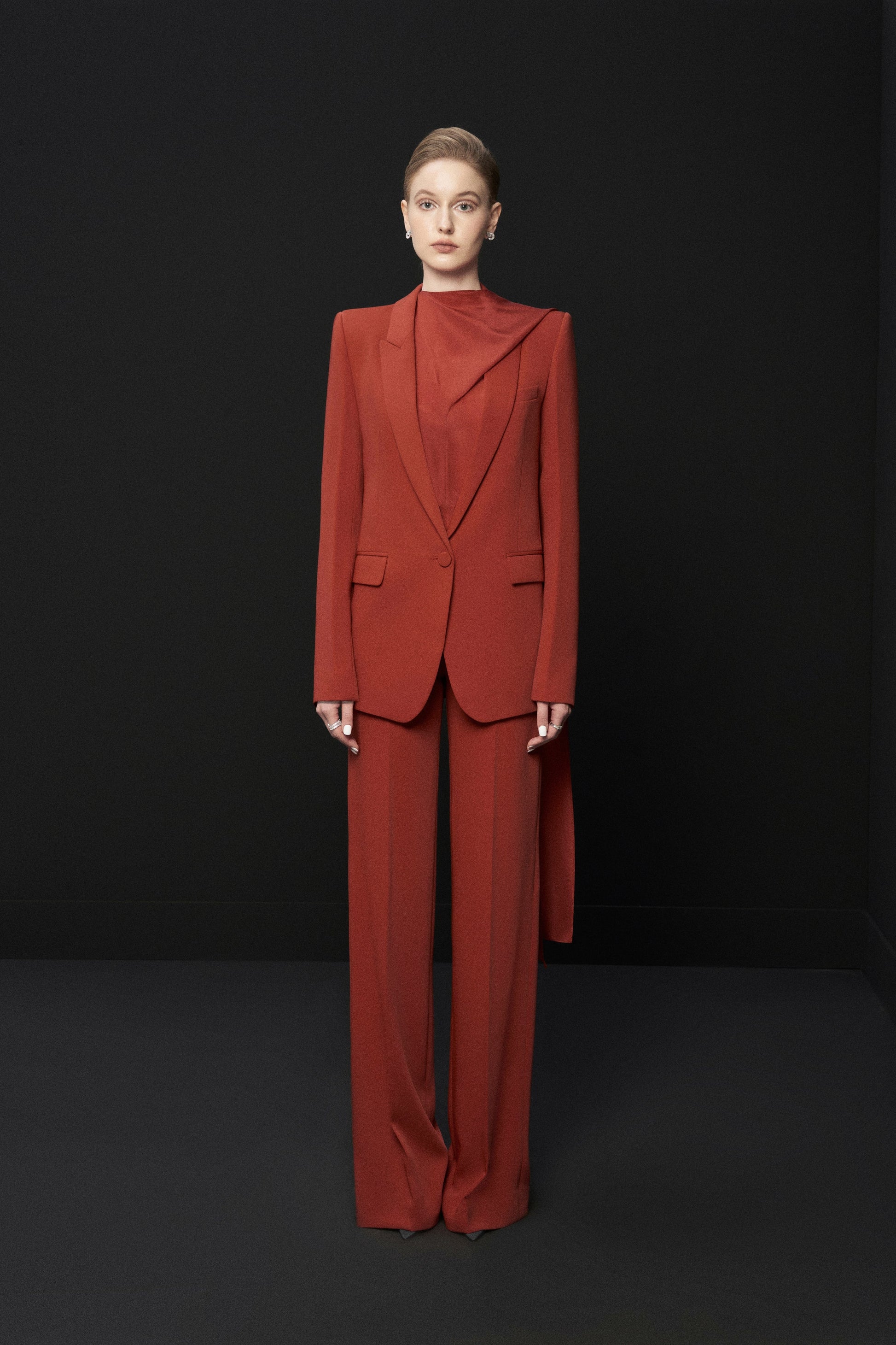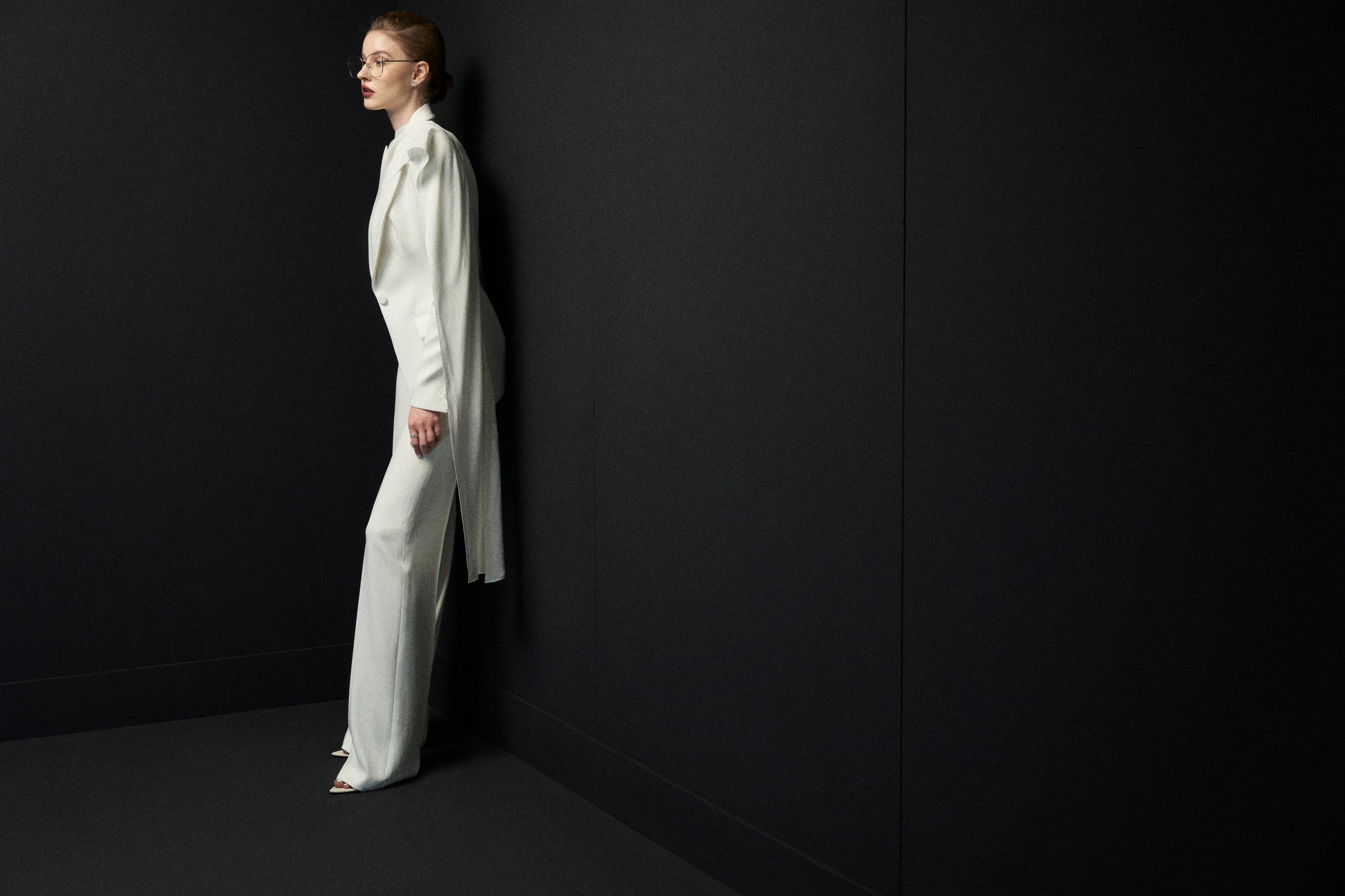 Được xử lý dưới chất liệu Marocain Crepe tạo độ mềm rủ, cùng thiết kế ống suông thẳng tạo những bước đi uyển chuyển, tôn vinh vóc dáng người phụ nữ.