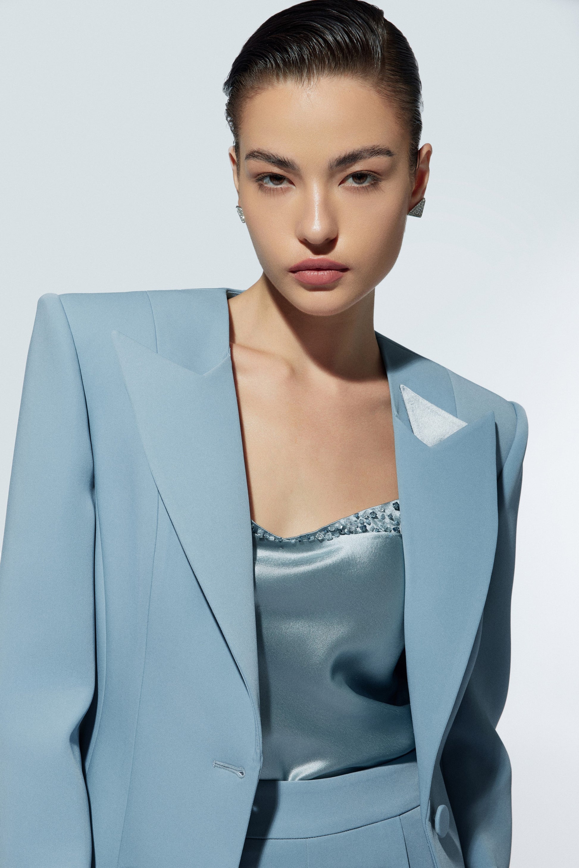 Lincoln Top với độ rủ mềm mại cùng điểm nhấn pha lê đính kết, gợi nhắc về một mùa hè thật nhẹ nhàng. Chất liệu lụa mềm mướt được xử lí bằng kỹ thuật cắt vải xéo tạo độ ôm tự nhiên, khéo léo tôn lên những điểm chạm tự nhiên.