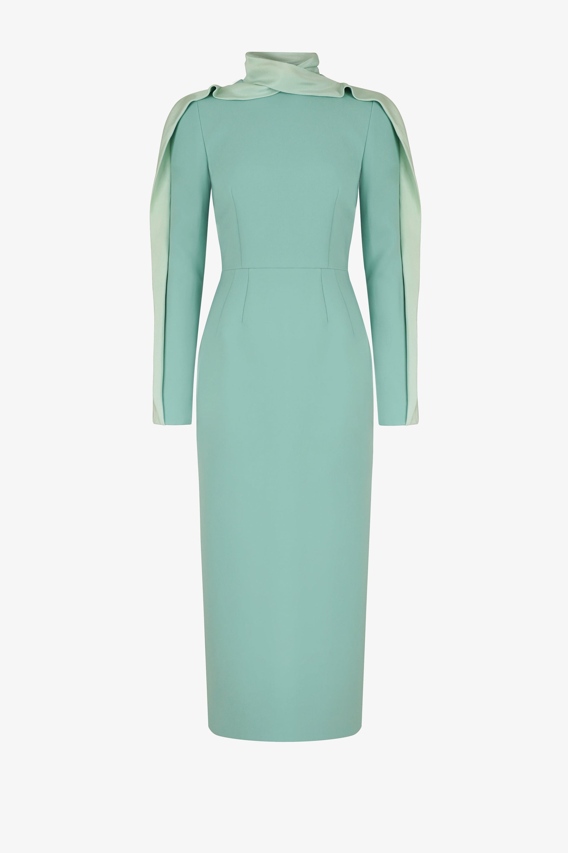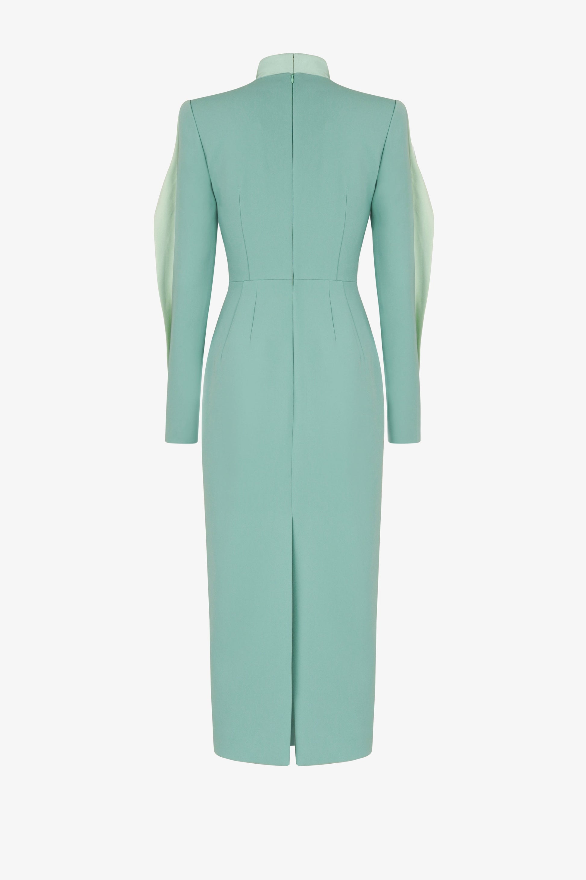 Tưởng chừng là đối lập nhưng tổng thể lại vô cùng hài hòa do cảm quan của chất liệu mang lại, dải sateen cùng màu trở thành điểm nhấn thị giác dù bản thân tone xanh mint đã vô cùng bắt mắt. Maia Dress là đại diện cho tinh hoa của tính nữ mềm mại và hơi thở đương đại của sức trẻ.