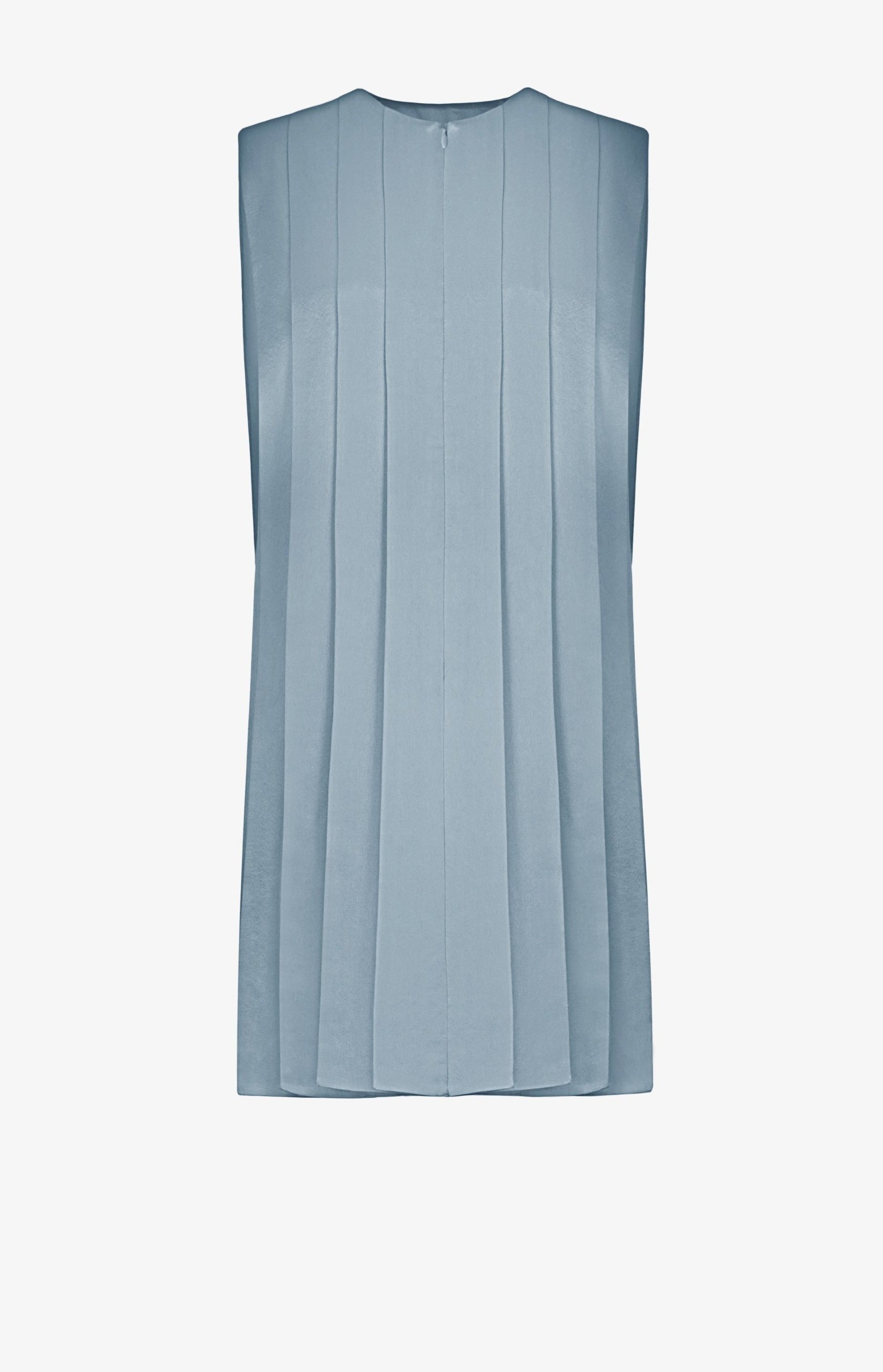 Váy xếp li có lót. Chiều dài ngang đùi. Khóa giọt lệ giữa thân trước.
