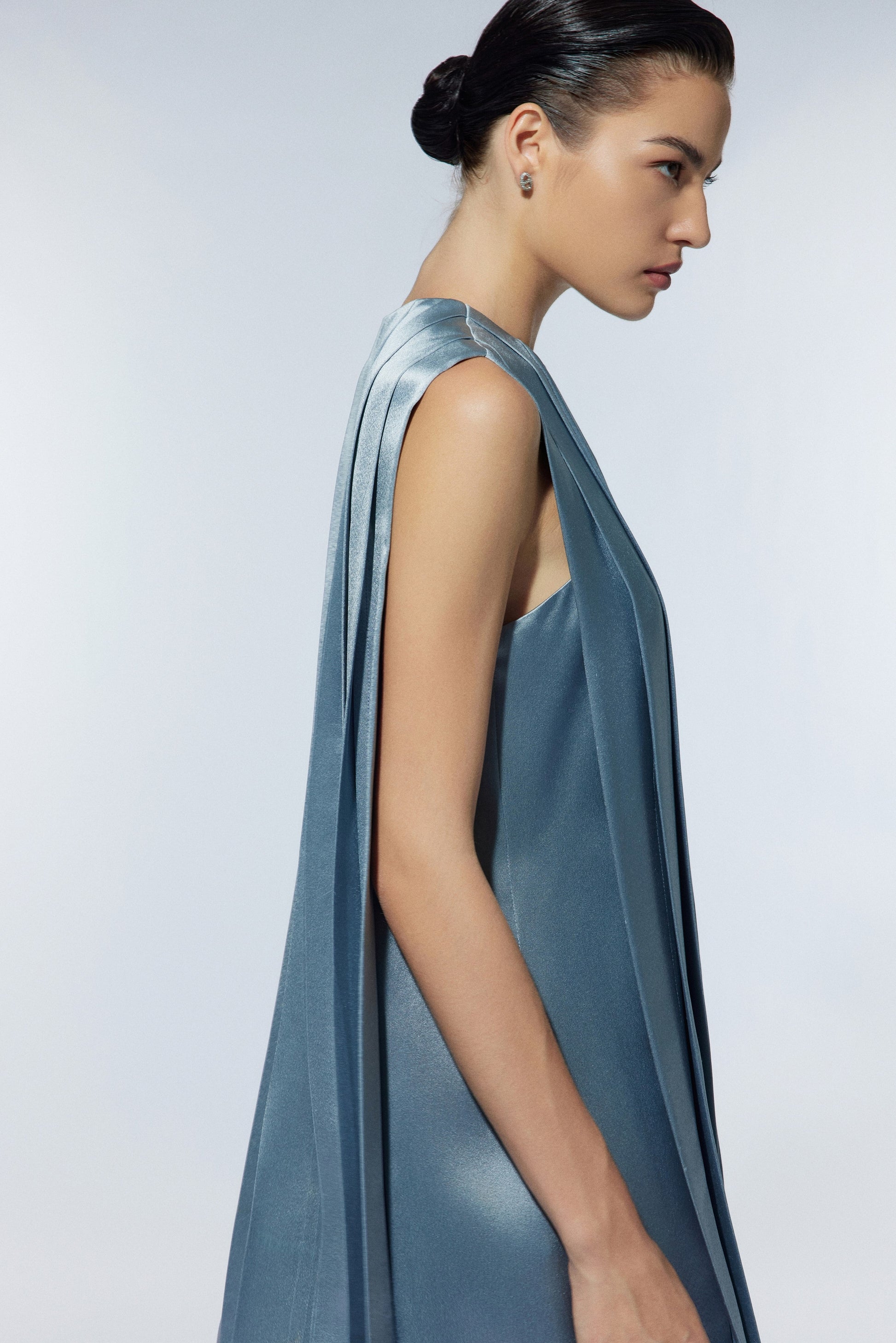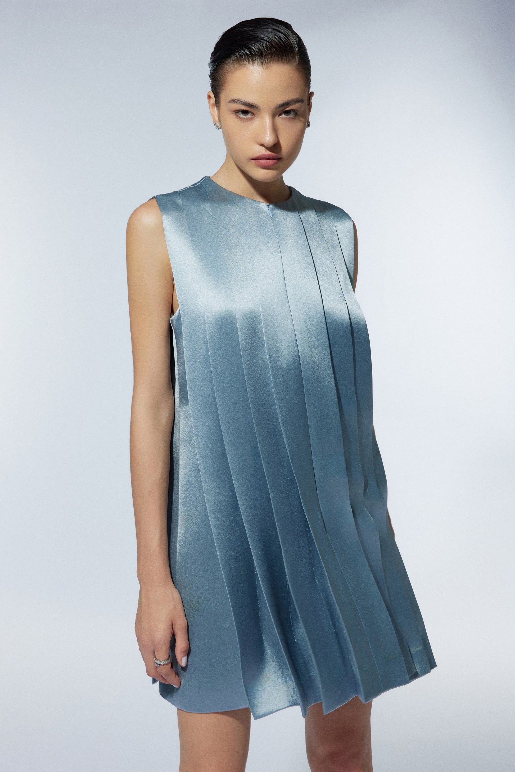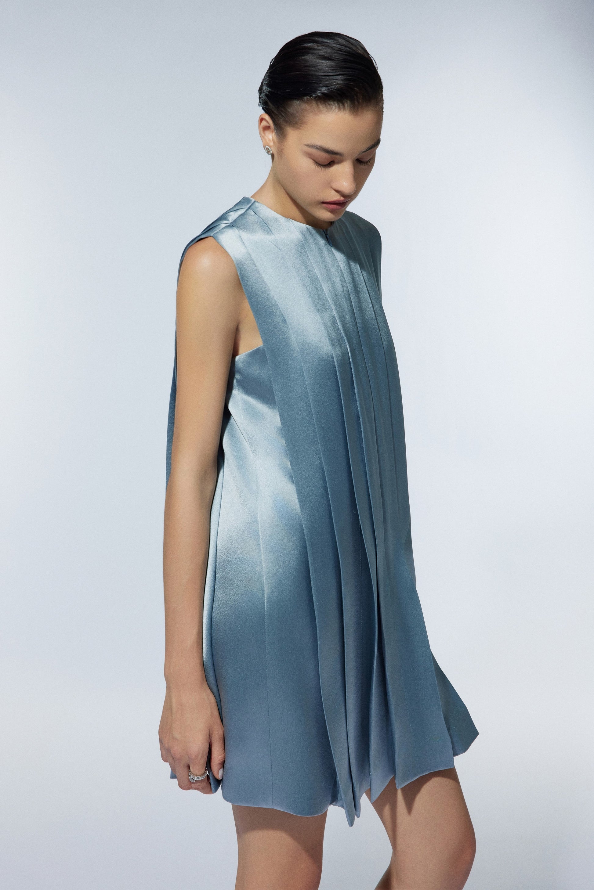 Với cách dàn dựng tinh tế trên đơn sắc, Minster Dress là lời tuyên ngôn về tính nữ đầy mạnh mẽ và thuyết phục. Trên nền chất liệu Sateen mềm mại, LEKIEU khéo léo áp dụng kỹ thuật thủ công tạo hình những đường xếp nếp phần thân váy với độ hoàn thiện và chính xác trong từng chi tiết.