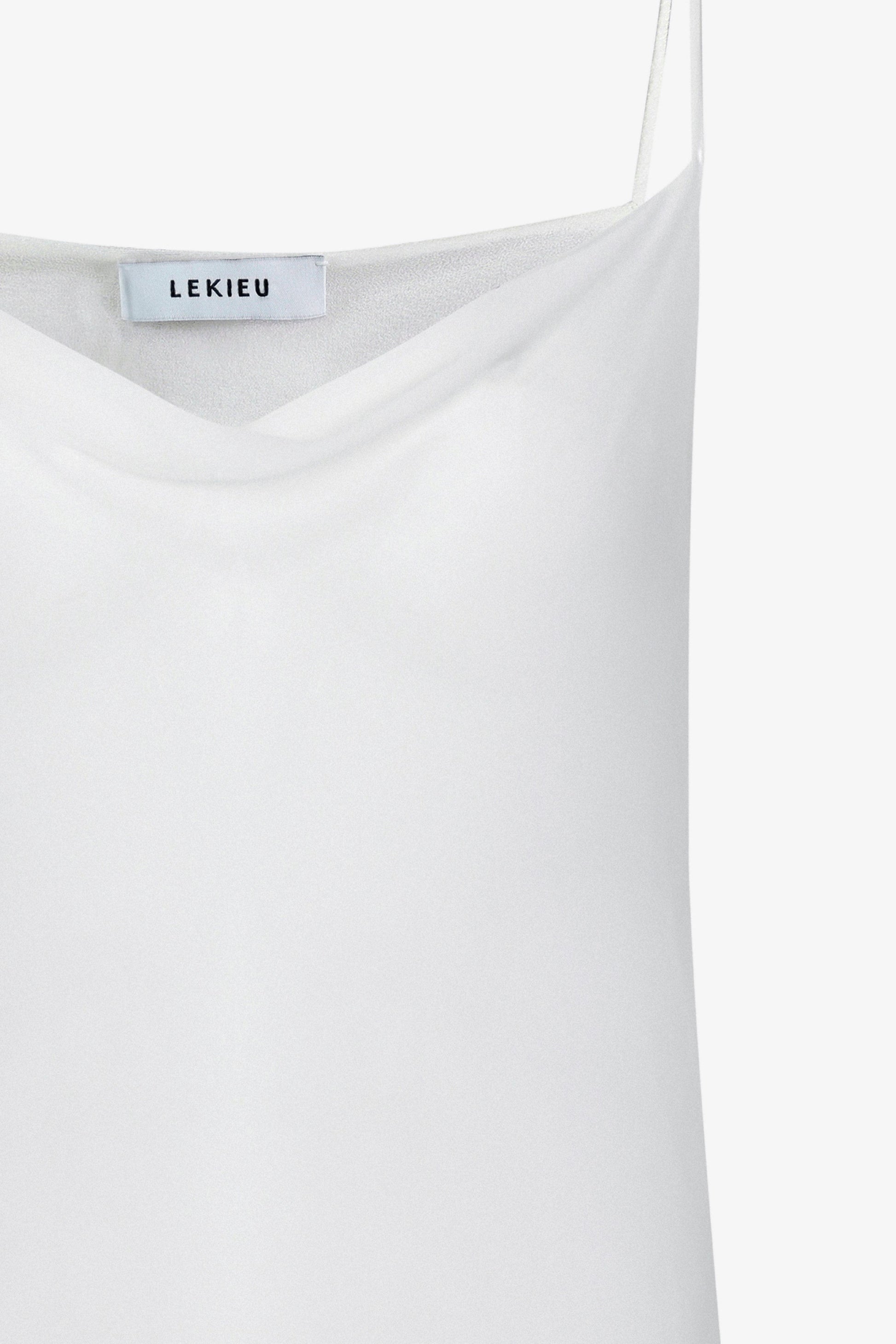 Áo hai dây cổ đổ, chất liệu lụa chiffon mỏng, thoáng mát.
