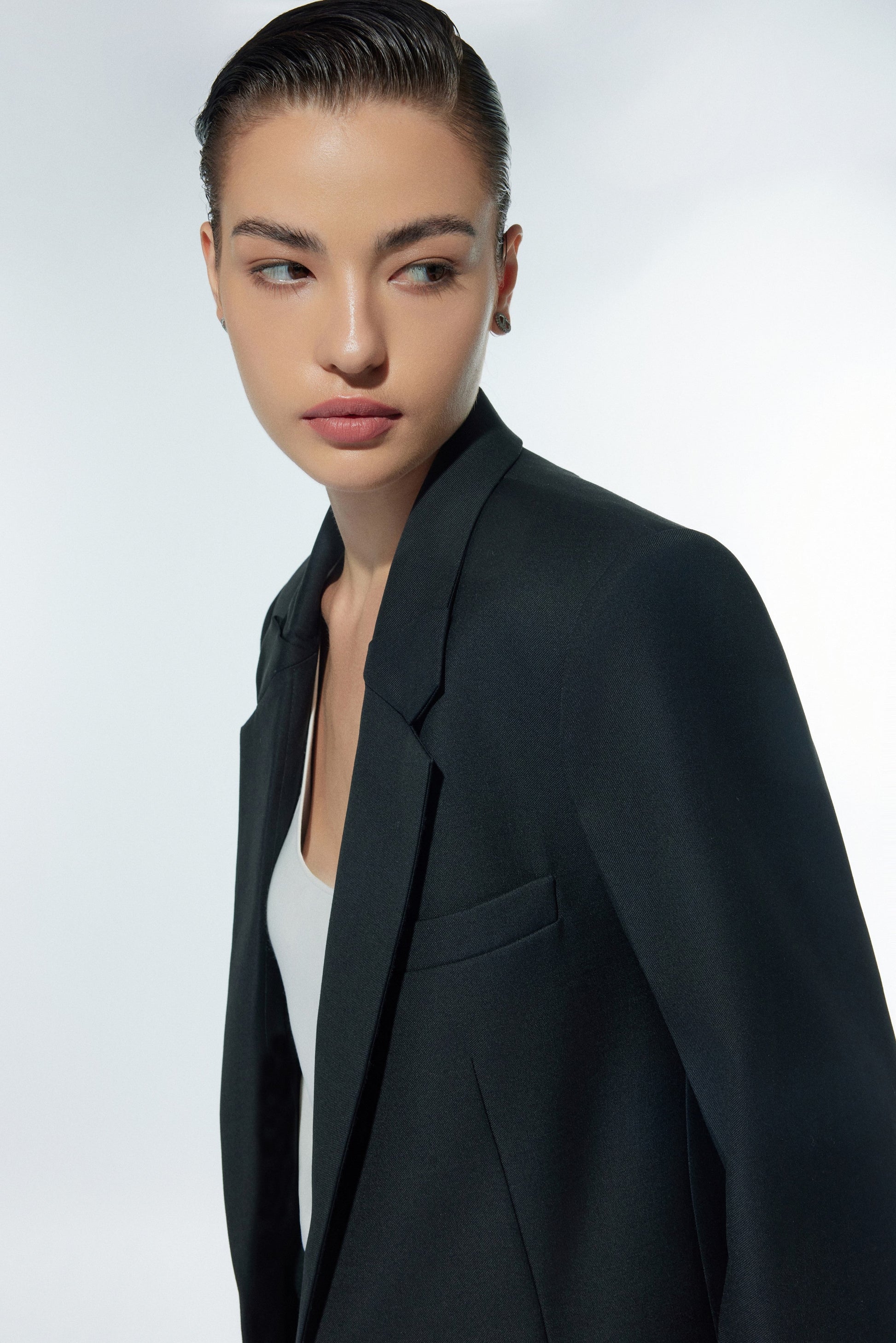 Tái sử dụng gam màu trung tính, Stanton Jacket kế thừa quy chuẩn từ suit nam cùng sự sáng tạo nên những tương phản mới lạ và thú vị trong việc lựa chọn chất liệu Wool cứng cáp kết hợp cùng những lát cắt tinh tế. Thiết kế mang phom dáng suông phóng khoáng cùng chi tiết ve áo được thiết kế cách điệu tạo điểm nhấn hoàn hảo cho tổng thể trang phục, phản ánh tính xác thực và sự độc đáo của nghệ thuật Tailoring.