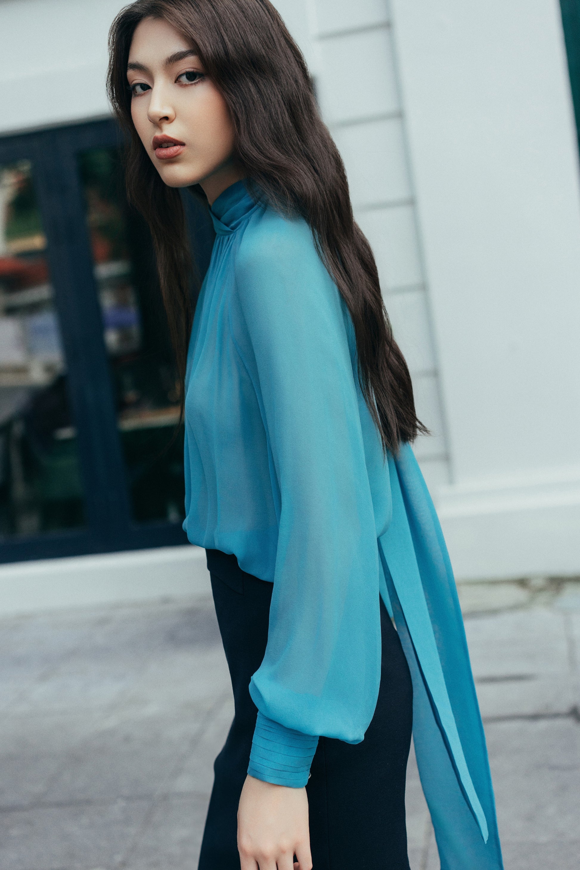Đáp ứng những tiêu chuẩn về đường cắt gọn gàng và cấu trúc mang tính thẩm mỹ, Terrassa Shirt chính là biểu tượng của sự quyến rũ hiện đại. Tận dụng tính chất mềm rủ của Chiffon để tạo phom dáng suông phóng khoáng, thiết kế được làm mới với phần dải lụa nối dài phía sau tạo nên những chuyển động nhẹ nhàng, khẳng định tuyên ngôn cá nhân về sự tự do trong thời trang.