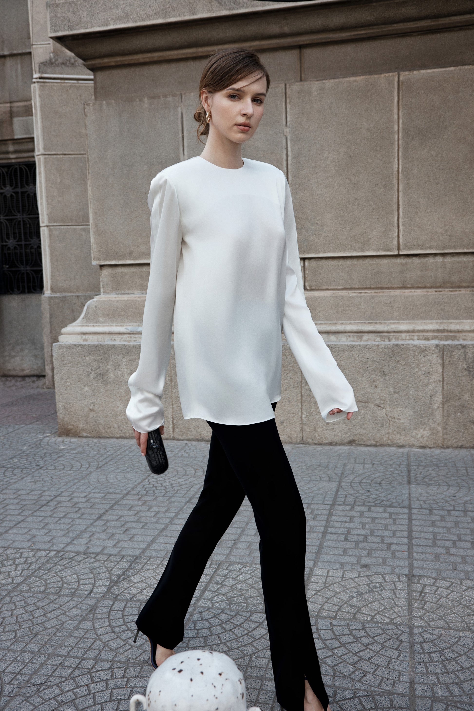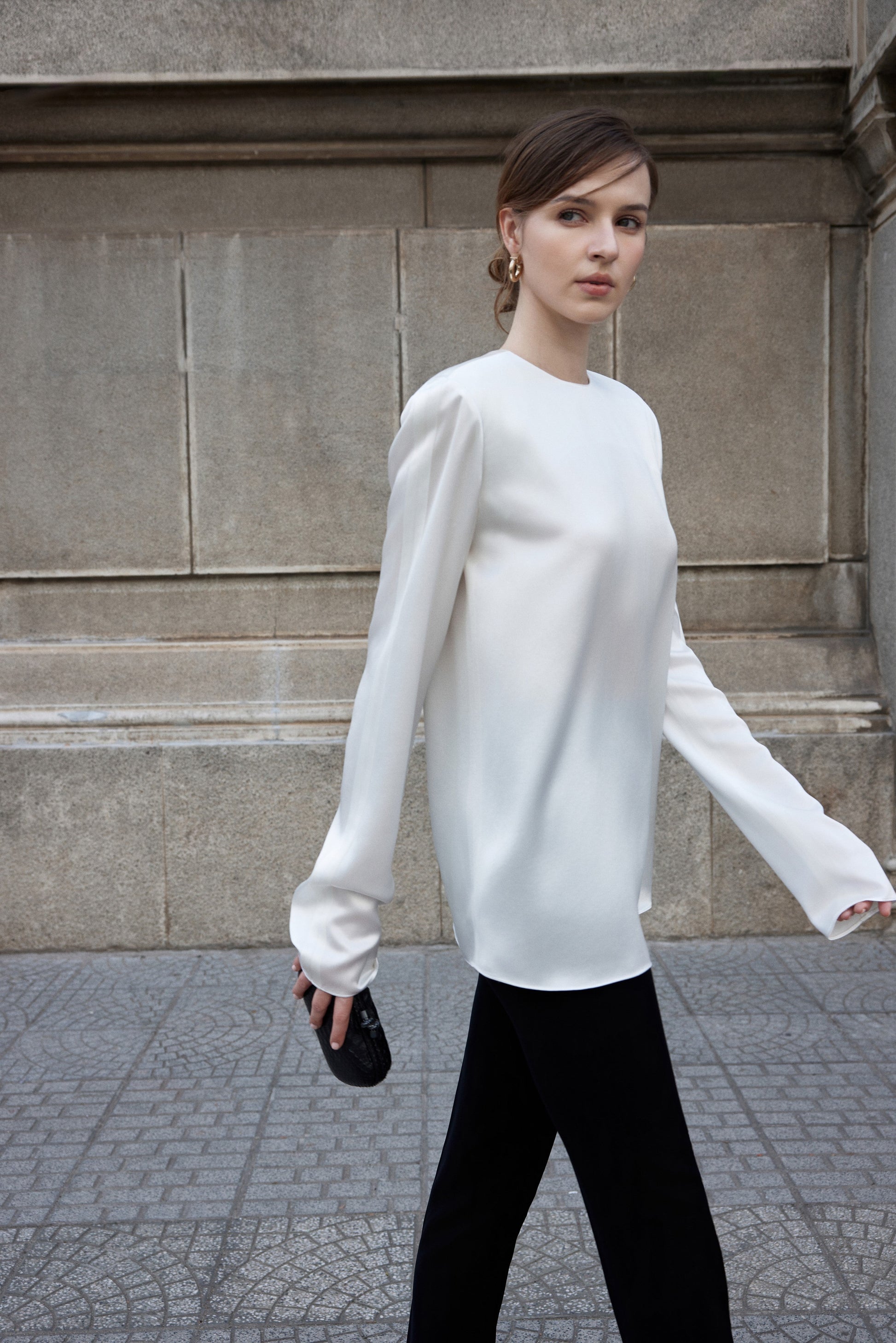 Thiết kế Bristol Top thuộc Bộ sưu tập Xuân Hè 24 được cải tiến những đường nét cắt, may với kỹ thuật biến đổi các đường ben (darts) và kỹ thuật Pattern 3D mang tới sự cân bằng giữa vẻ sang trọng đặc trưng và tính ứng dụng cao. Trên nền chất liệu Sateen mềm mại, những đường nét tinh chỉnh từng phần cầu vai, ống tay tạo nên những điểm nhấn tinh giản nhưng tôn lên vẻ thanh lịch, phóng khoáng của người phụ nữ LEKIEU.