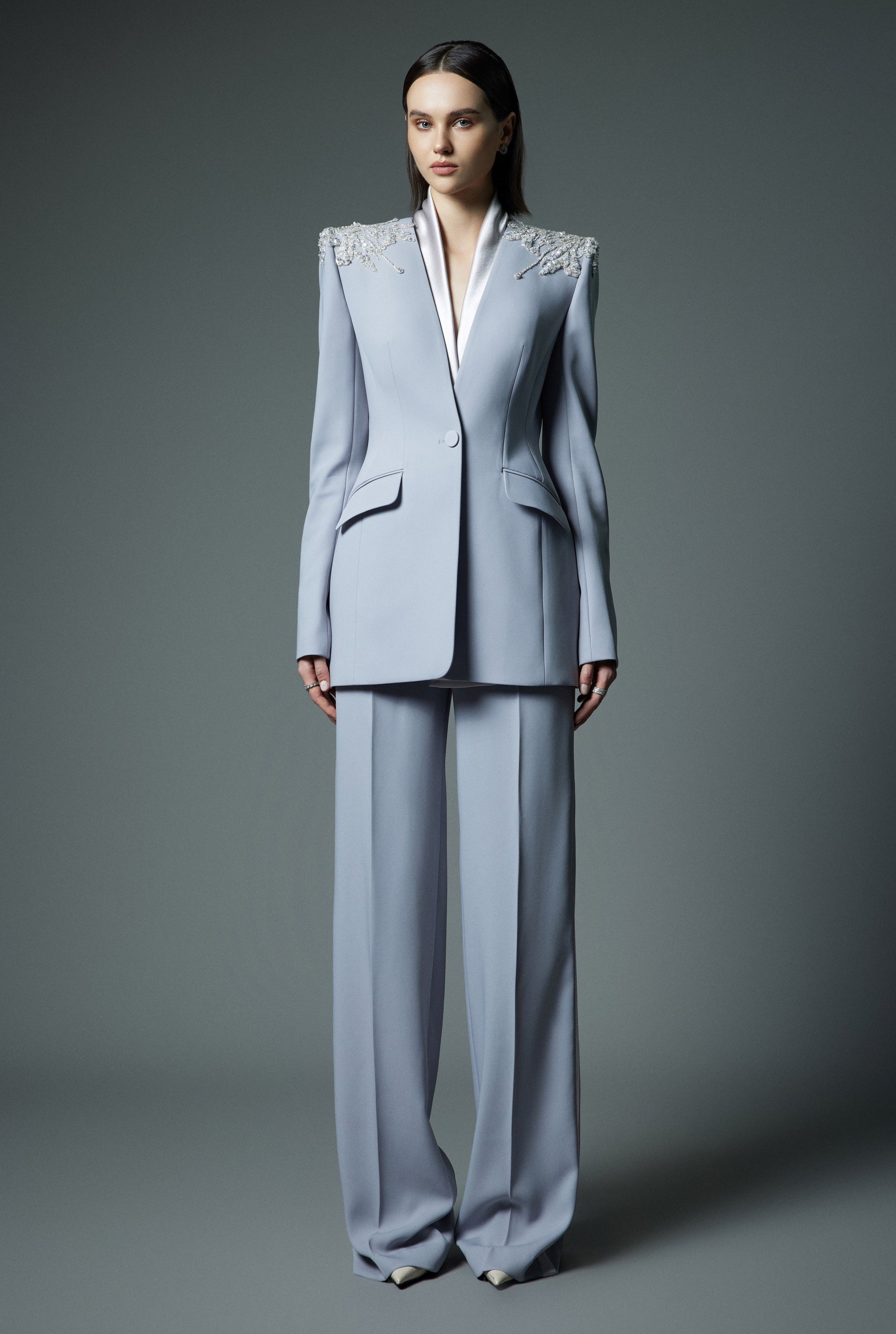 Phom dáng quần ống suông signature của LEKIEU được nâng cấp với phiên bản cạp sườn phối sateen, cùng chiều dài phủ giày giúp "ăn gian" chiều cao, tạo hiệu ứng thon gọn cho người mặc.