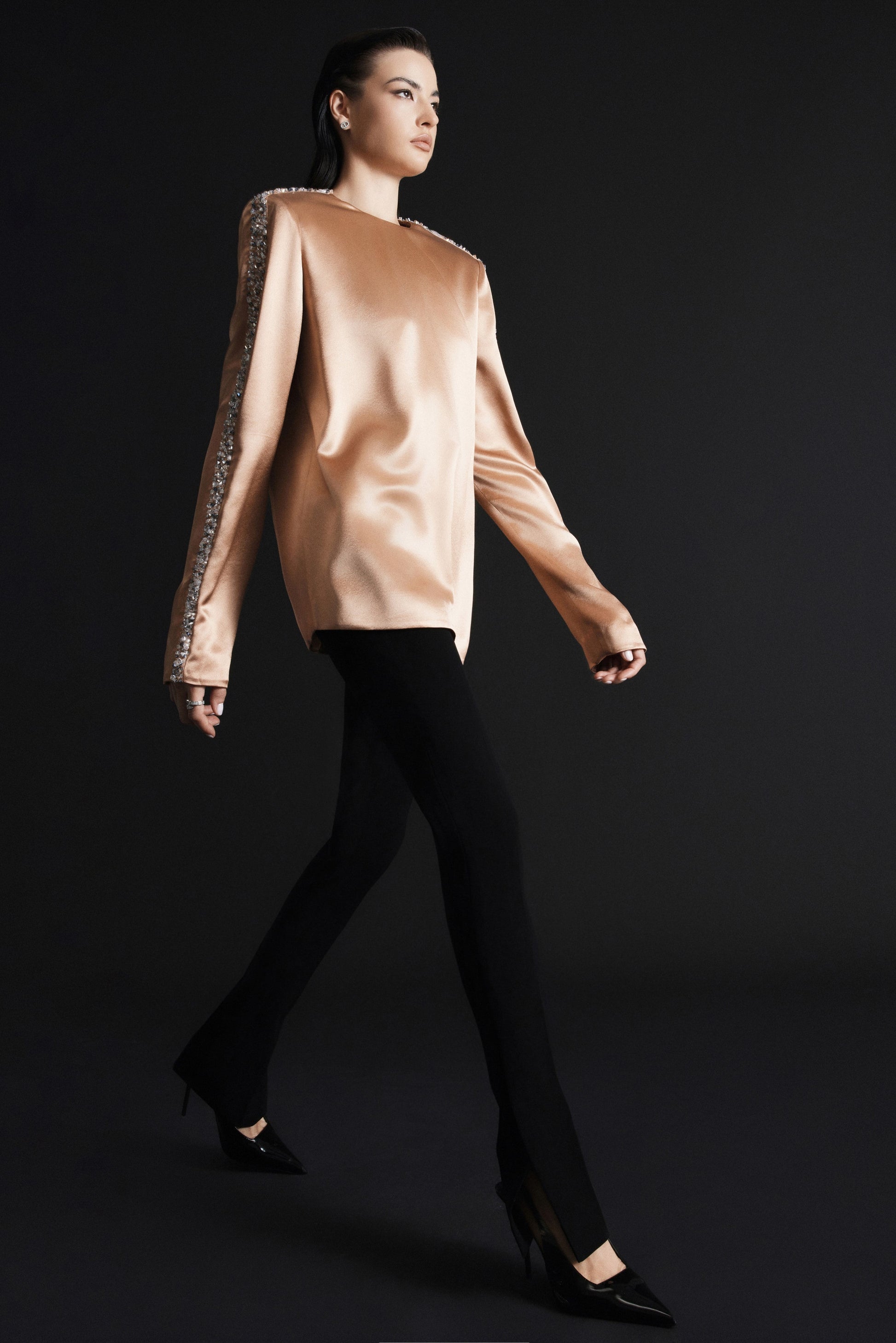Vẫn xuất hiện trong phom dáng quần ống côn quen thuộc, Carnaby Pants với chi tiết xẻ gấu và phần cạp thiết kế cao khéo léo tôn trọn đường cong cơ thể.