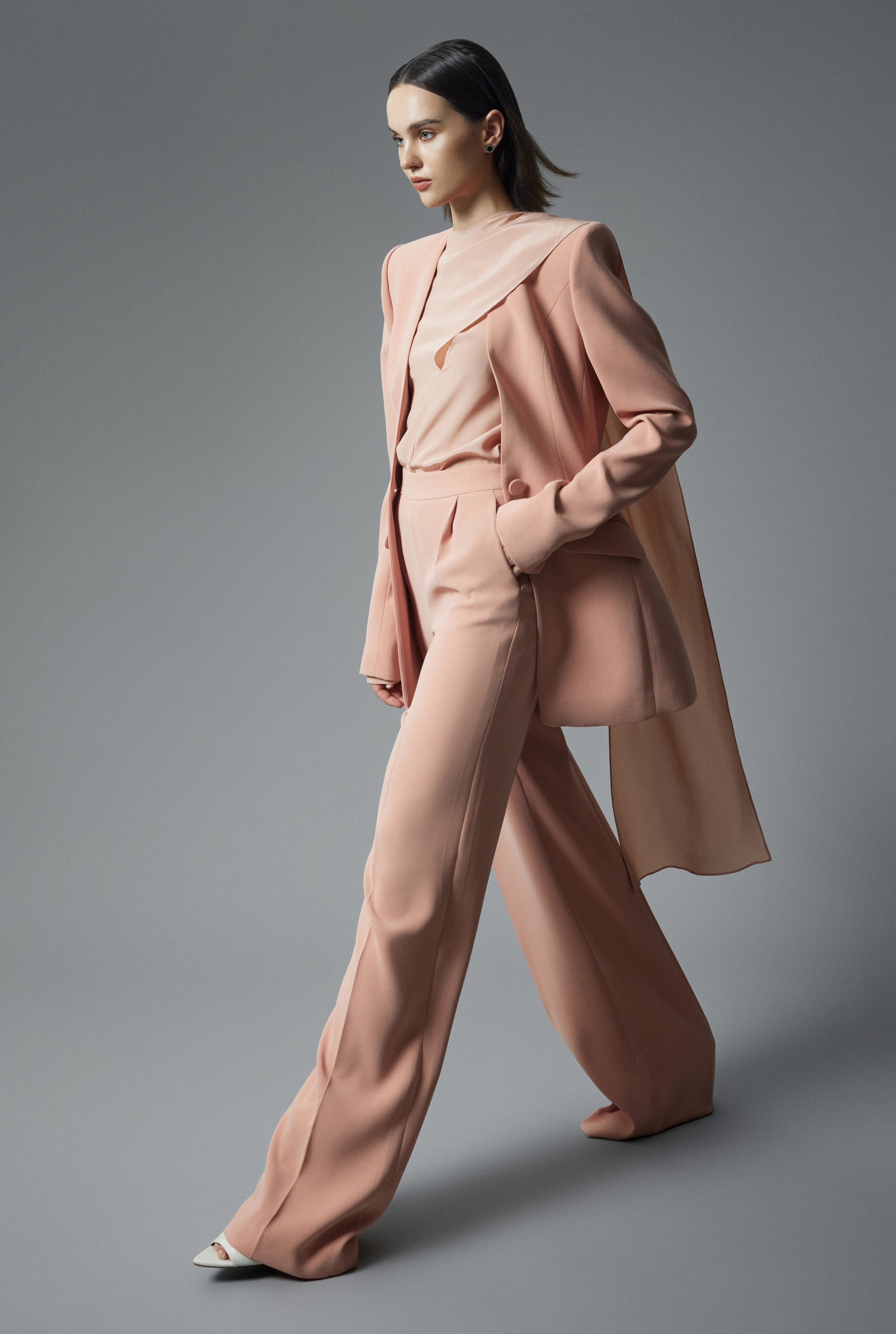 Chiếc áo với điểm nhấn nằm ở phần vạt khăn mang đến sự khác biệt tinh tế, dễ dàng biến hoá tạo nên những diện mạo khác nhau. Mang dáng vẻ sang trọng khi phối cùng chân váy ôm lưng cao tạo nên sự cân bằng giữa nét thanh lịch và thoải mái.