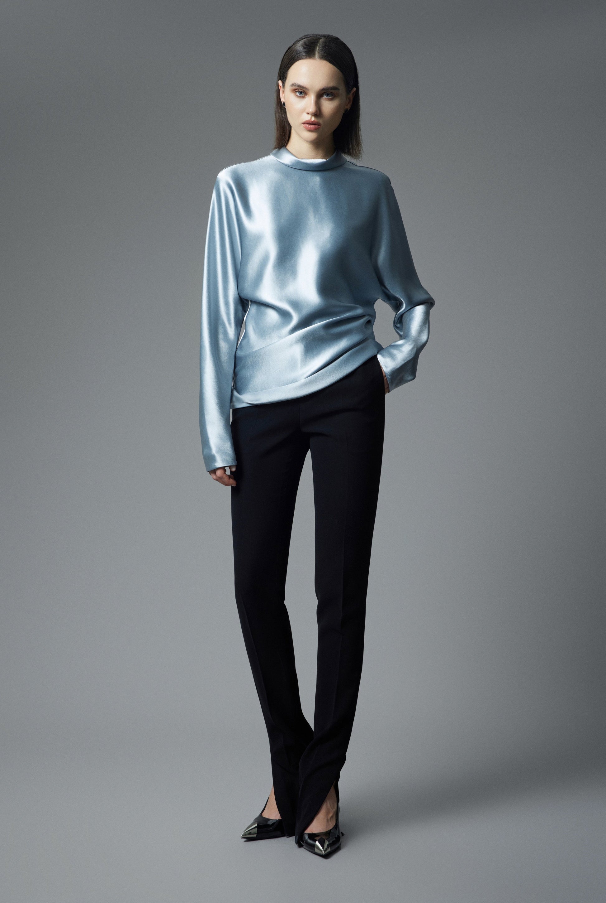 Cải tiến từ những chiếc sơ mi dáng ôm thông thường, Juana Top với chi tiết bùng nhẹ thân trên cộng hưởng cùng phần vai ngang tạo nên tổng thể hài hoà và nữ tính.