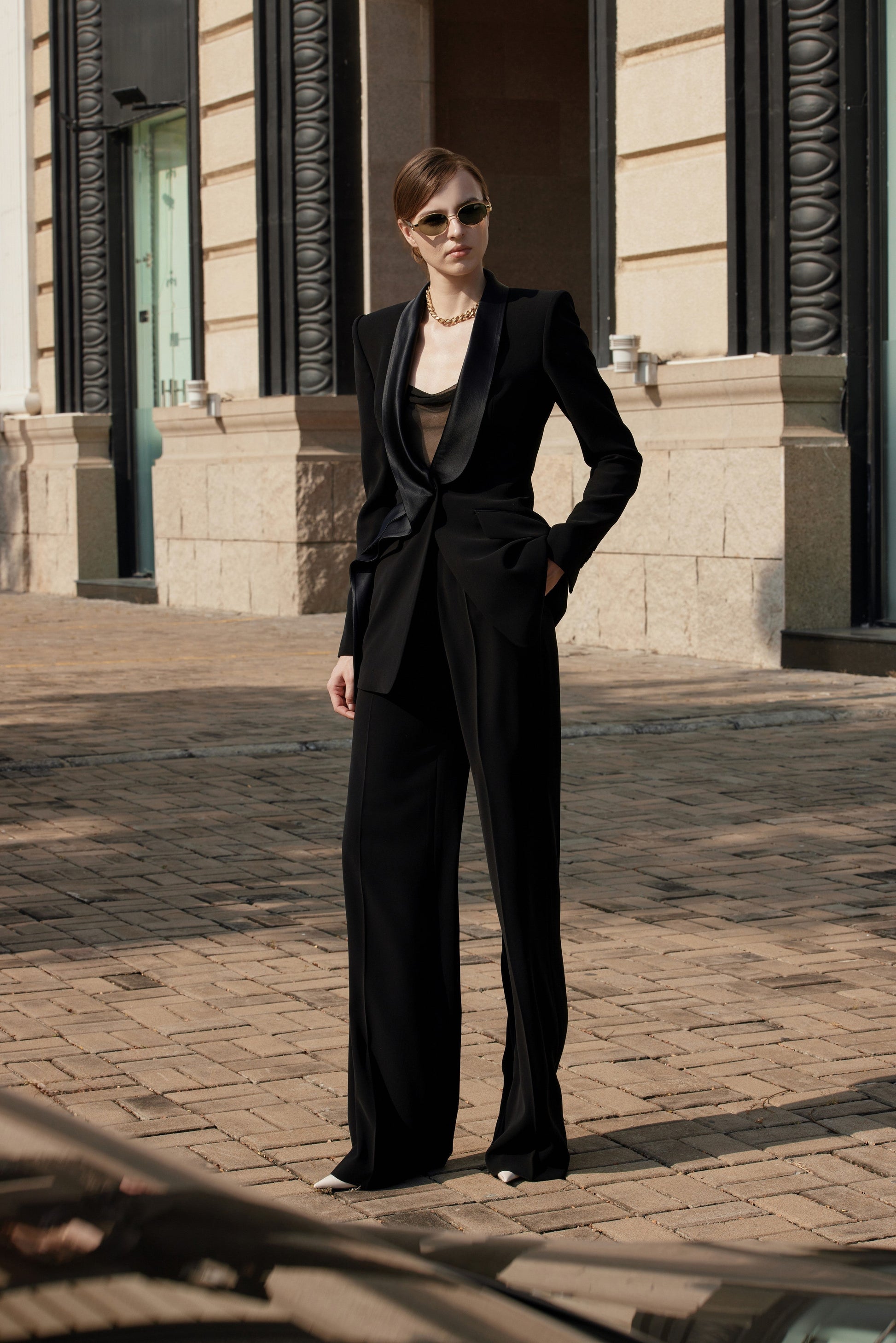 Được xử lý dưới chất liệu Marocain Crepe tạo độ mềm rủ, cùng thiết kế ống suông thẳng tạo những bước đi uyển chuyển, tôn vinh vóc dáng người phụ nữ.