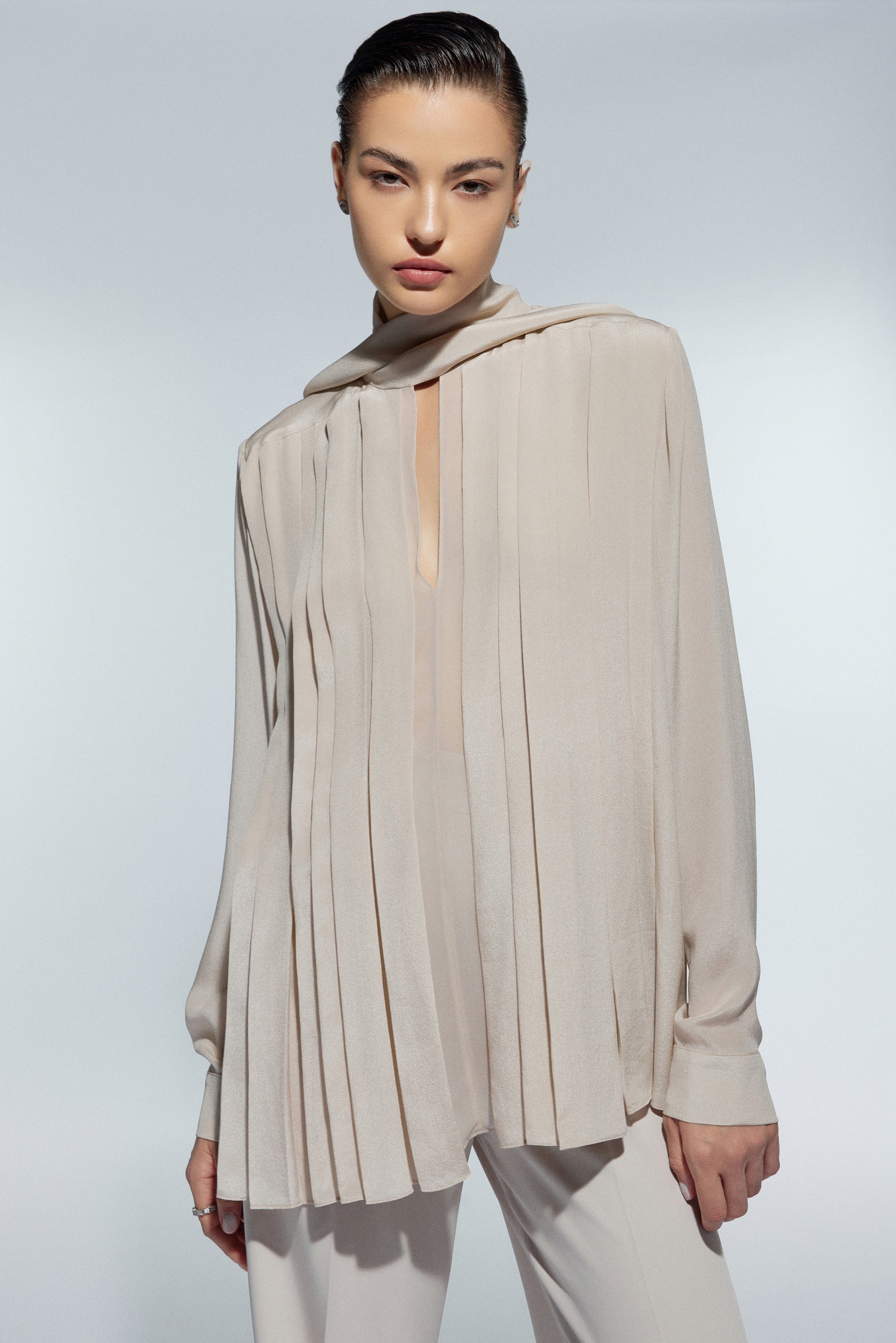 Được xử lý dưới chất liệu Marocain Crepe tạo độ mềm rủ, cùng thiết kế ống suông thẳng tạo những bước đi uyển chuyển, tôn vinh vóc dáng người phụ nữ.