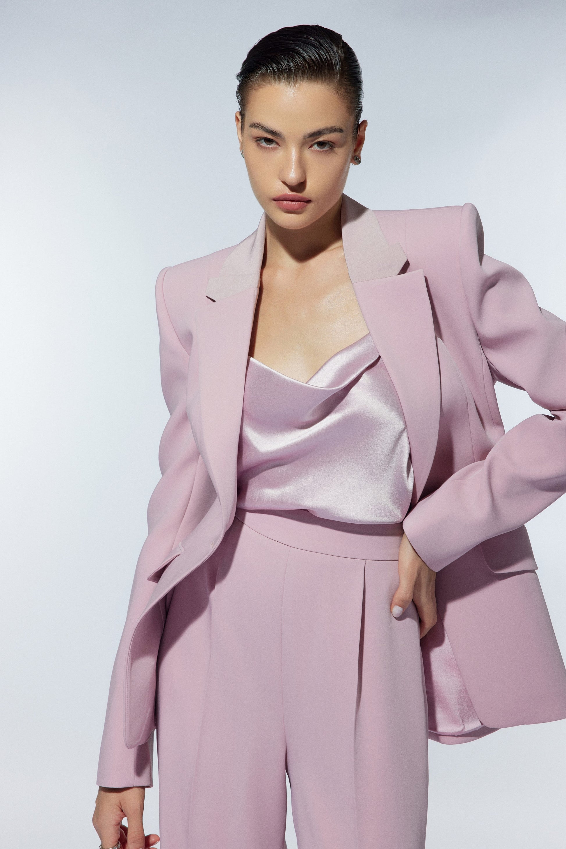 Được xử lý dưới chất liệu Marocain Crepe tạo độ mềm rủ, cùng thiết kế ống suông thẳng tạo những bước đi uyển chuyển, tôn vinh vóc dáng người phụ nữ.