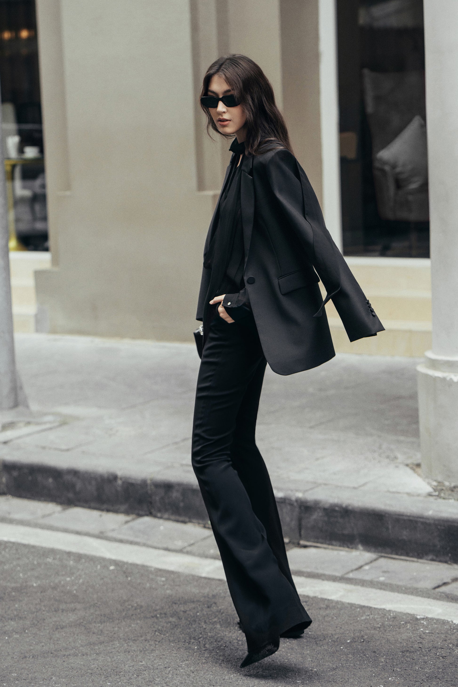 Xuất trong phom dáng ống loe hiện đại, Martine Pants được xử lí trên chất liệu Marocain Crepe tạo độ đứng phom nhưng vẫn giữ được nét mềm mại, nữ tính do cảm quan tổng thể mang lại.