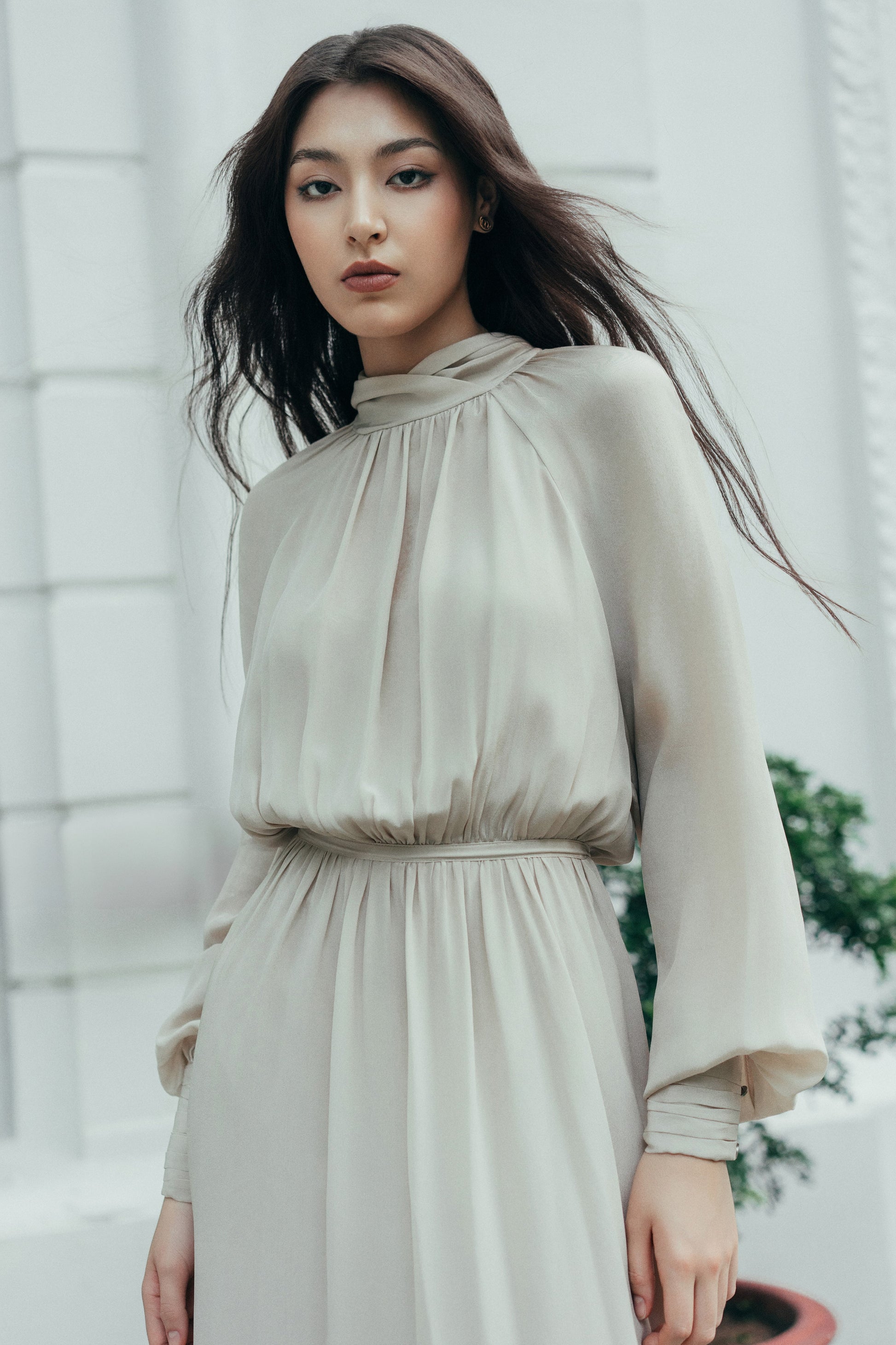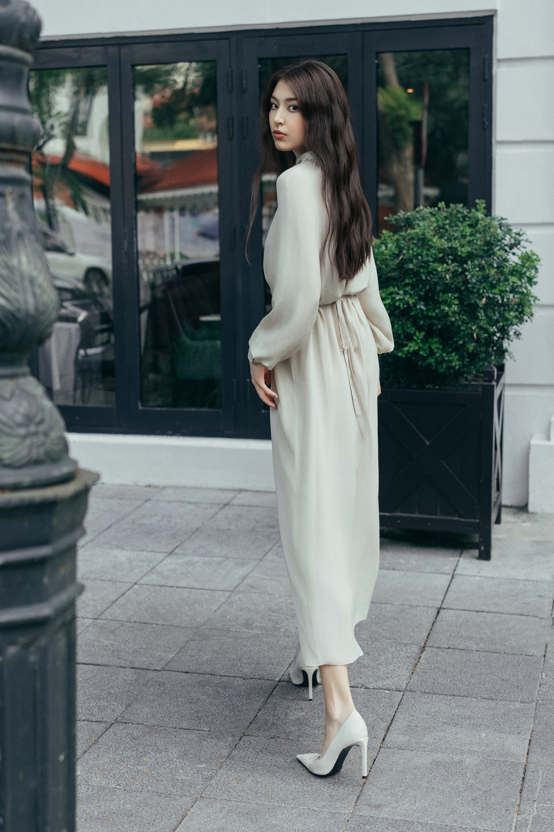 Được nâng cấp từ Alesia Shirt với phần cổ xếp nếp raglan đặc trưng, Palma Dress xuất hiện trong tone đơn sắc độc đáo. Trên nền chất liệu Crepe de Chine, thiết kế là sự pha trộn hoàn hảo giữa những giá trị nữ tính và thanh lịch của người phụ nữ hiện đại.
