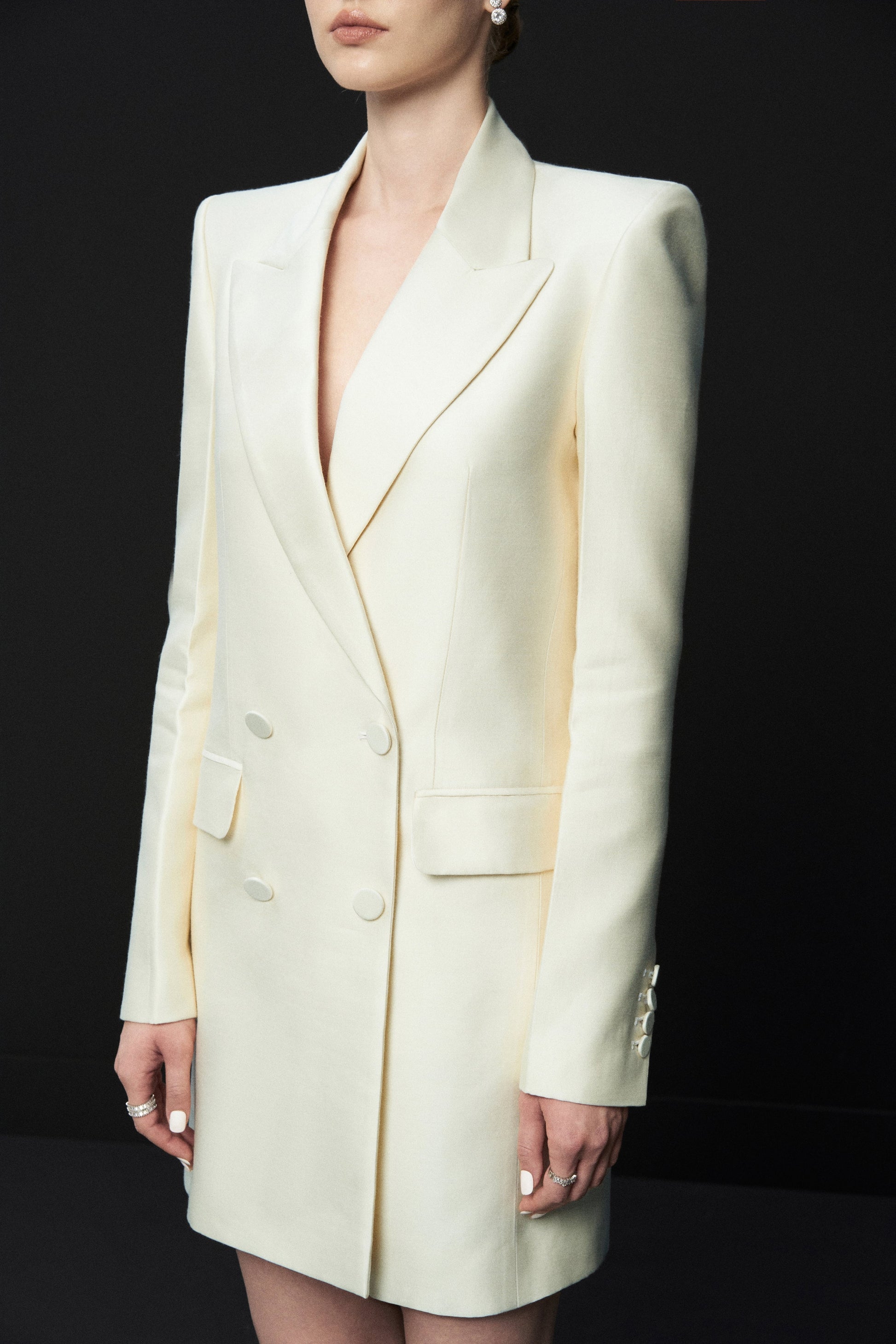 Elegant with the peak lapel blazer style, but still no less the feminity with a minidress form, the item is a harmonious interference of softness and sturdiness which will be a great choice for trendy modern girls.