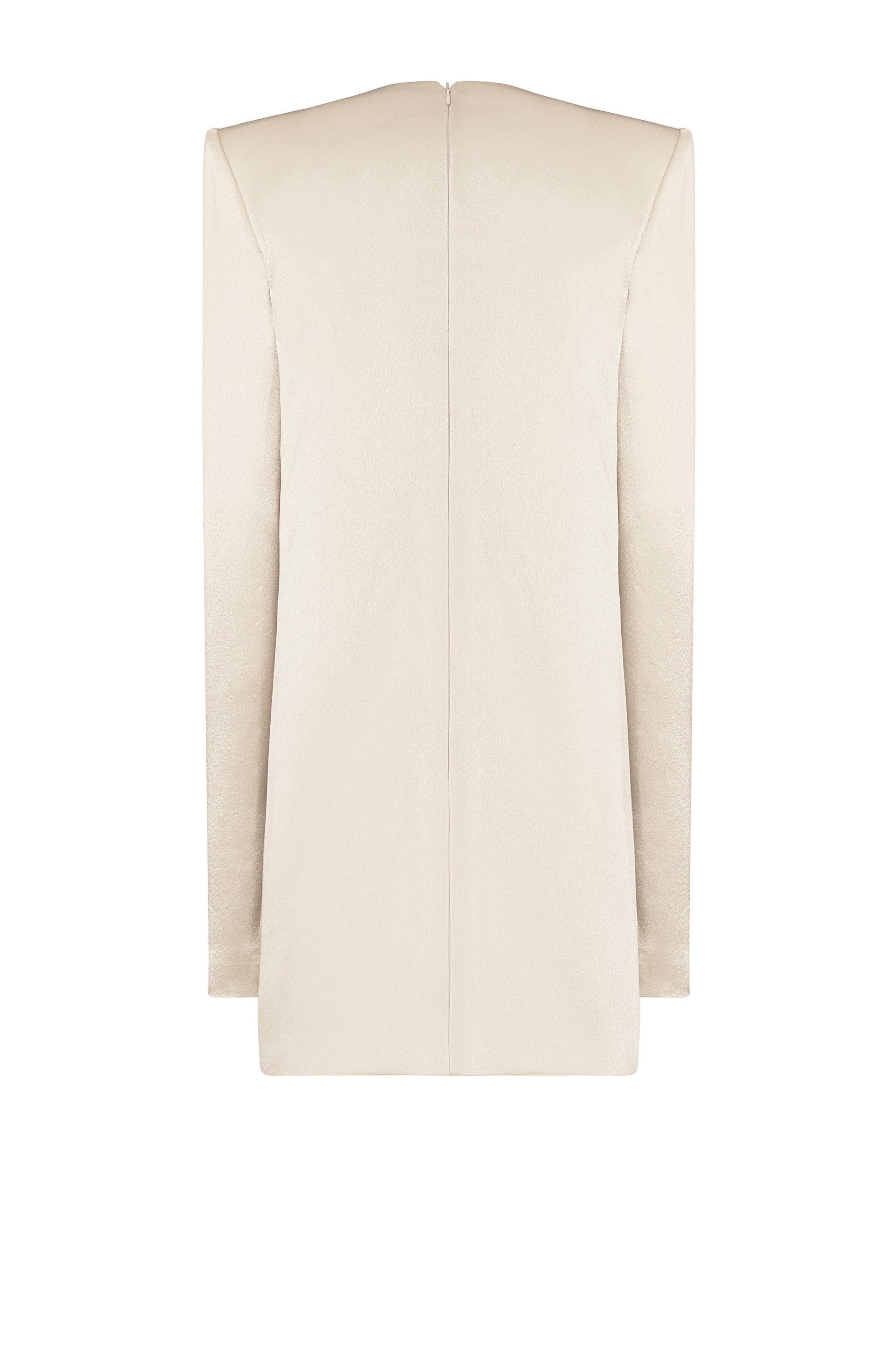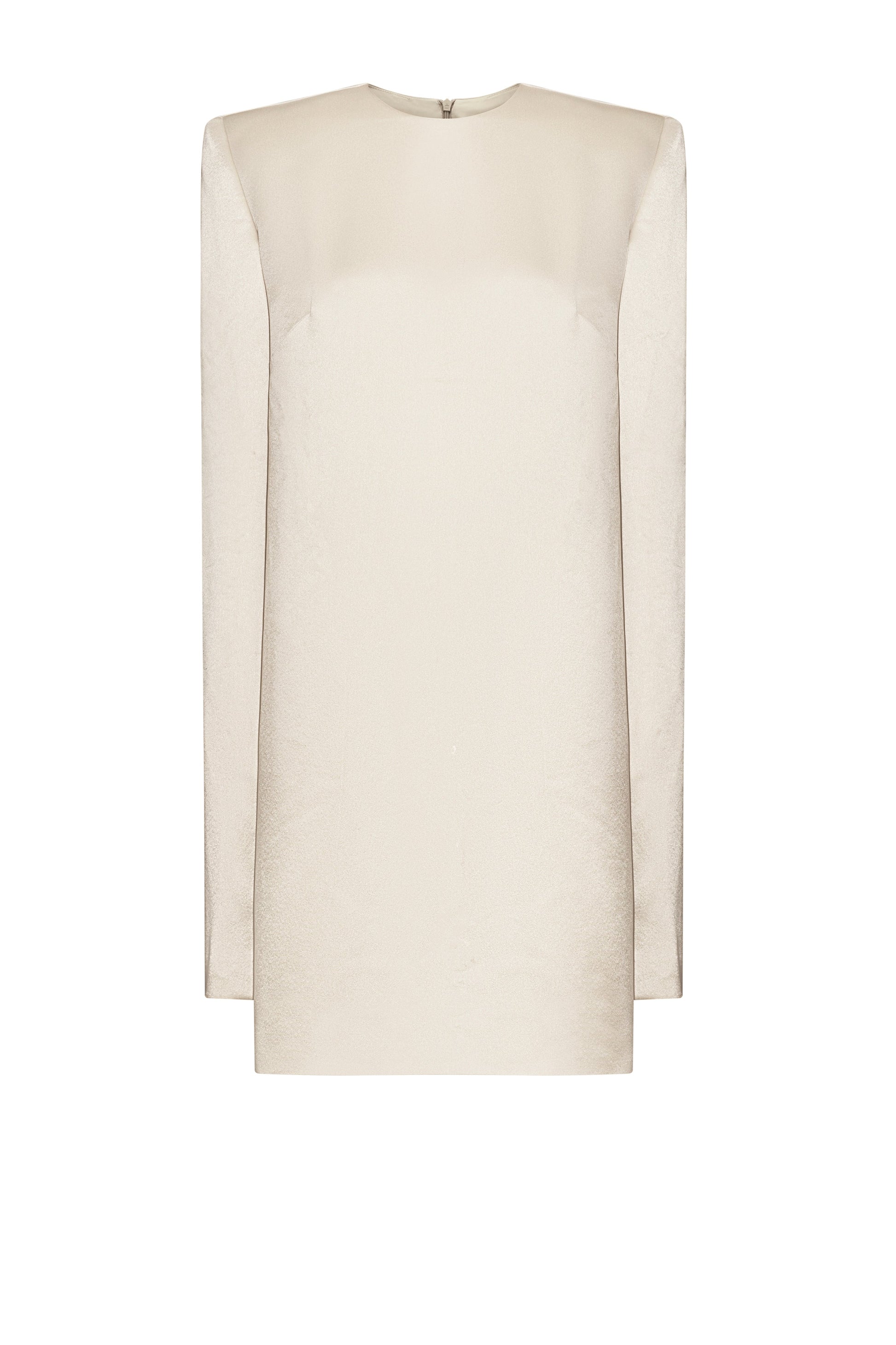 Long Sleeve dress with square padded shoulders and round neckline - Mini dress length - The cuffs are long enough to cover the fingers - Invisible zipper at the center back