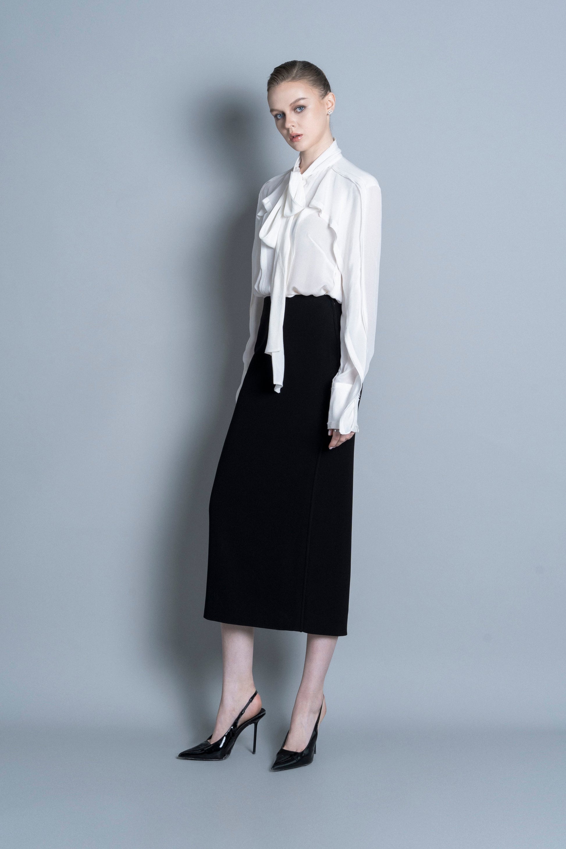 Crafted using the bias cut technique, the Santa Cruz Shirt offers a striking visual appeal with its intentionally imperfect seams, creating a unique and dynamic effect. The extended silk tie detail and refined double-cuffs elevate the design, making it a symbol of timeless sophistication.