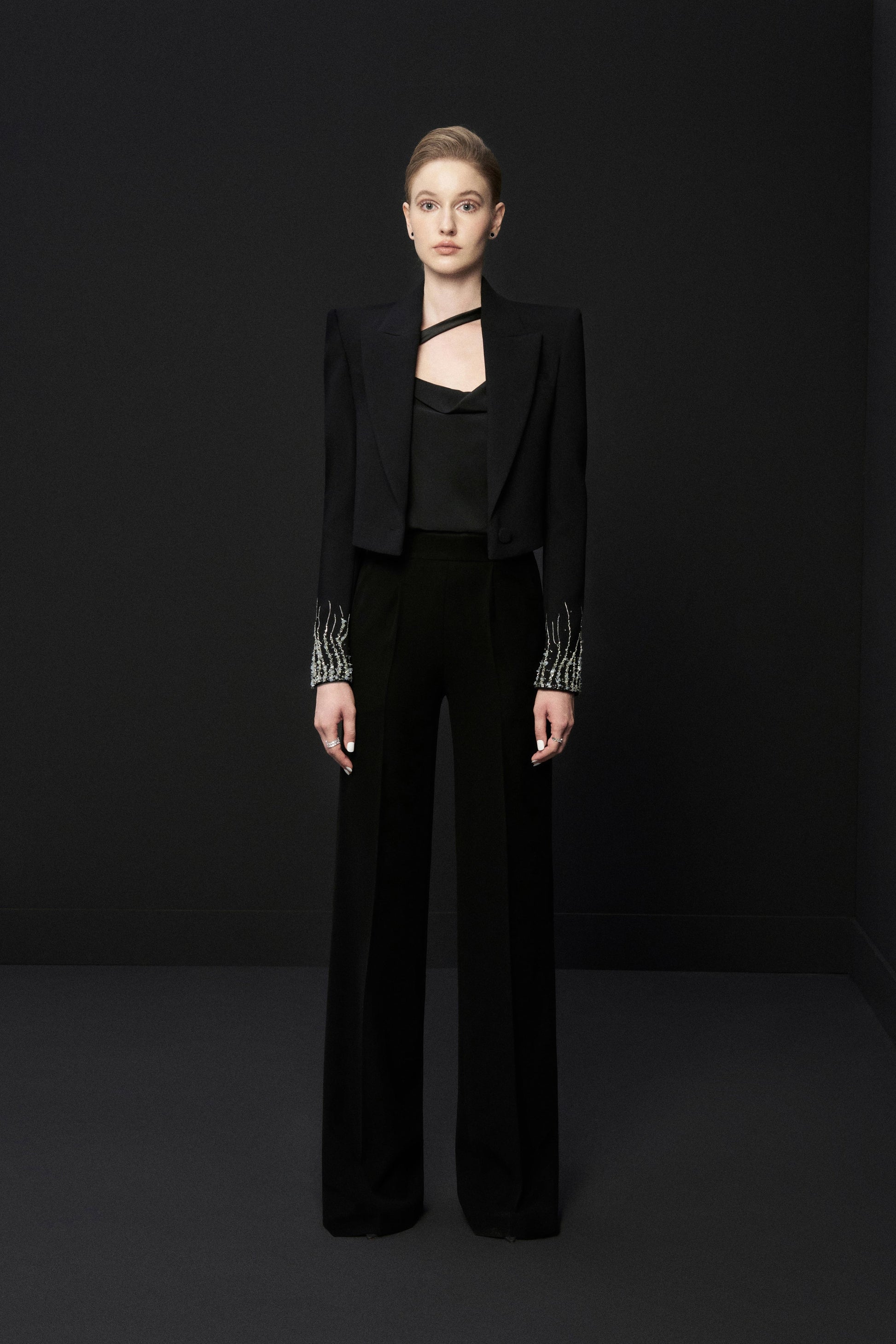 Sử dụng chất liệu cao cấp kết hợp với phương pháp đính kết thủ công của Haute Couture - chi tiết thêu đính được làm hoàn toàn bằng tay bởi những người nghệ nhân lành nghề để đảm bảo độ hoàn hảo và độc nhất. Veneta Jacket là kết quả của hàng trăm giờ đồng hồ thực hiện, LEKIEU lựa chọn kết hợp với quần âu lưng cao cùng phần vạt bong đáp ngoài phù hợp cho những buổi dạ tiệc sang trọng. Đại diện cho sự xa hoa và đẳng cấp, Haute Couture là đỉnh cao của sức sáng tạo và kỹ thuật may đo mà bất cứ thương hiệu nào cũng muốn vươn tới.