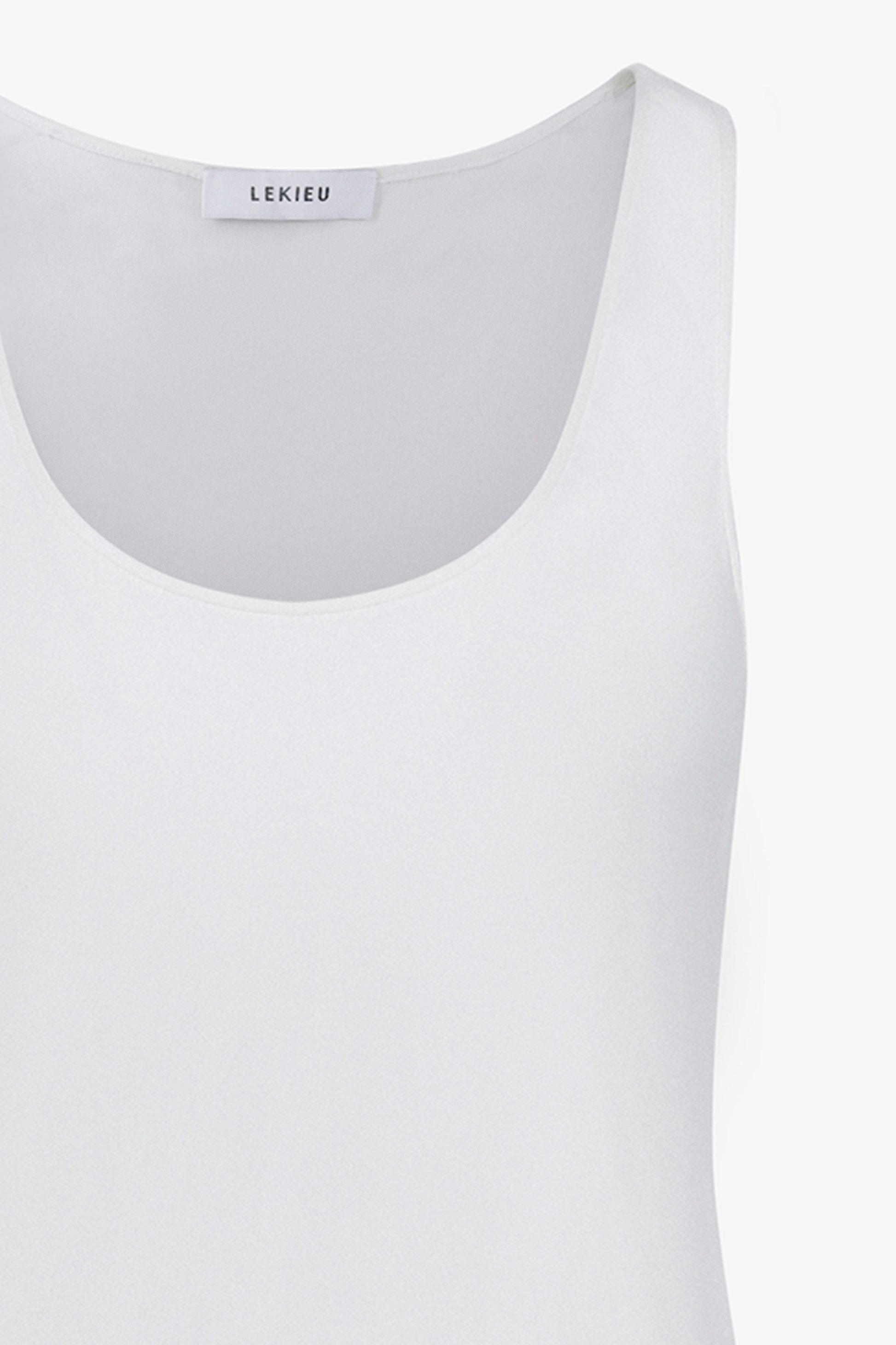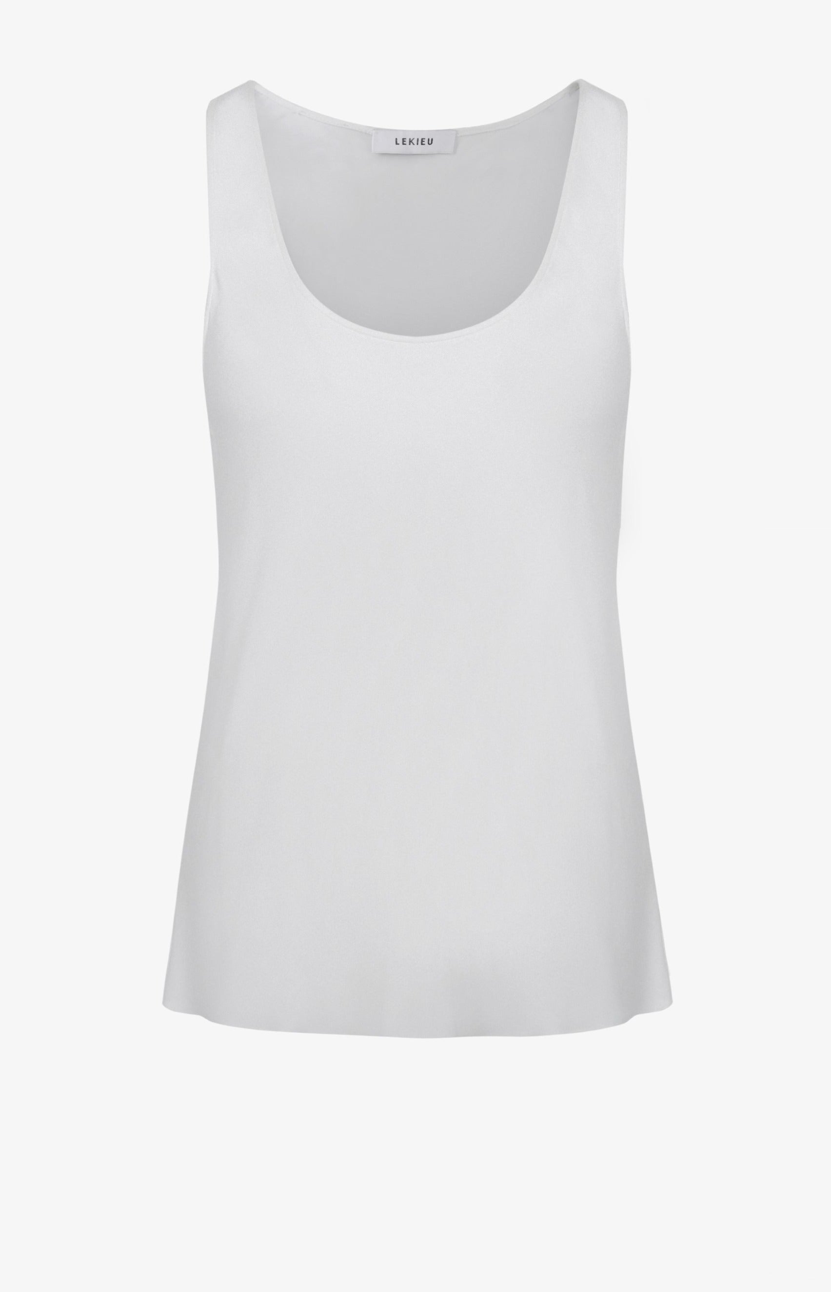 Áo tank top lụa, cổ chữ u tròn, gấu thẳng.